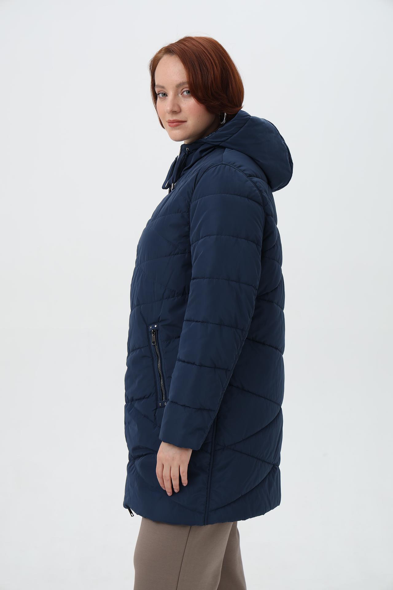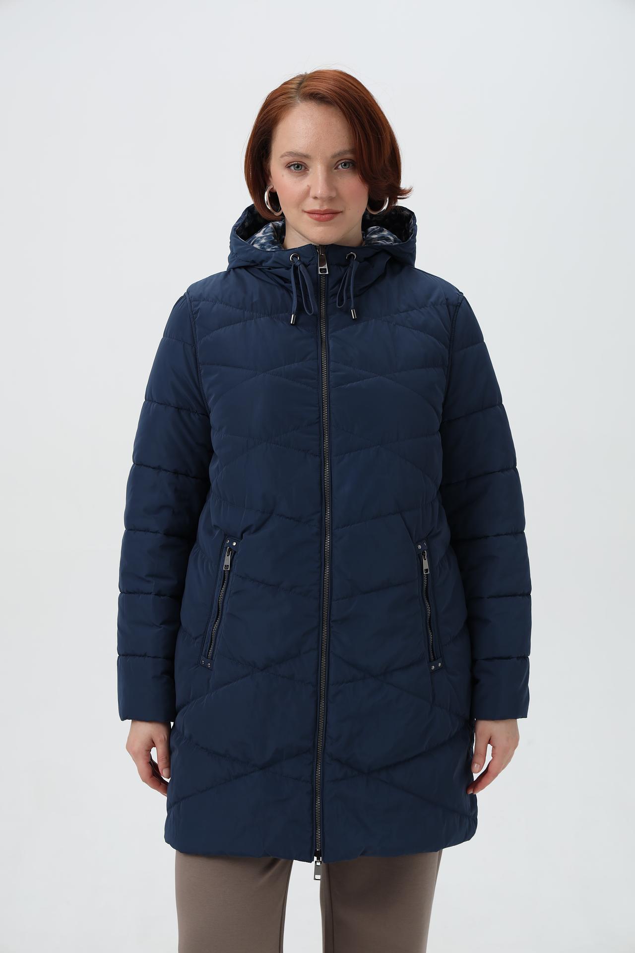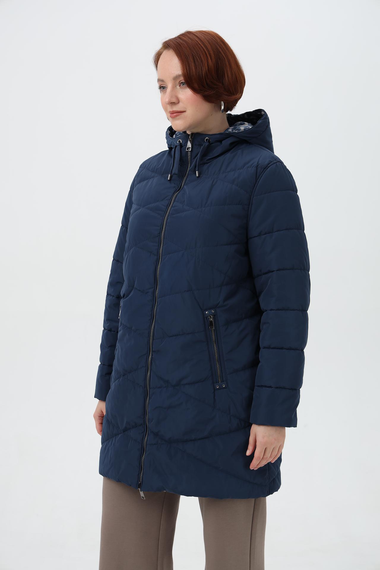 - Двусторонность: Возможность носить куртку как в однотонном темно-синем цвете, так и с эффектным принтом, делает ее универсальной для создания различных образов.