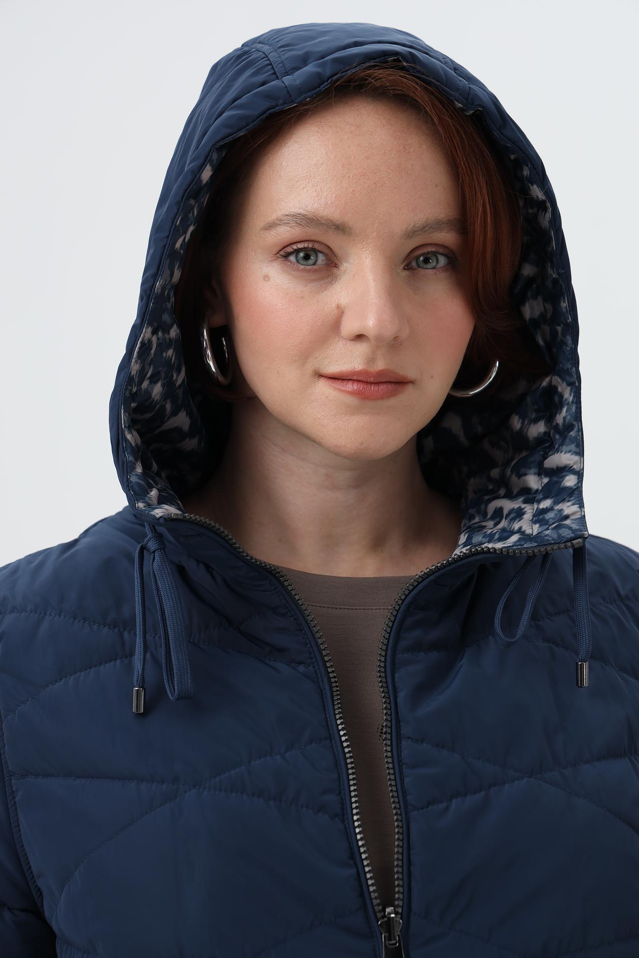 - Дизайн: Куртка имеет актуальный стеганый узор, который придает ей дополнительный объем и текстуру. Капюшон с контрастной подкладкой с принтом добавляет изюминку и защищает от непогоды.