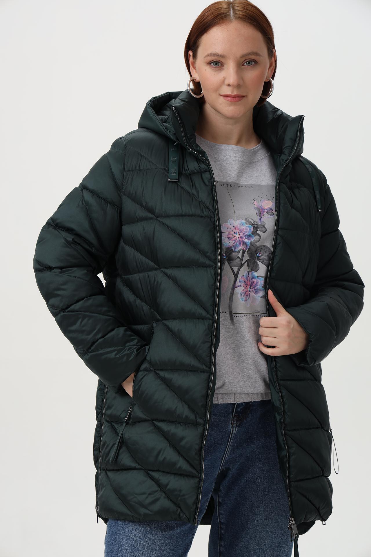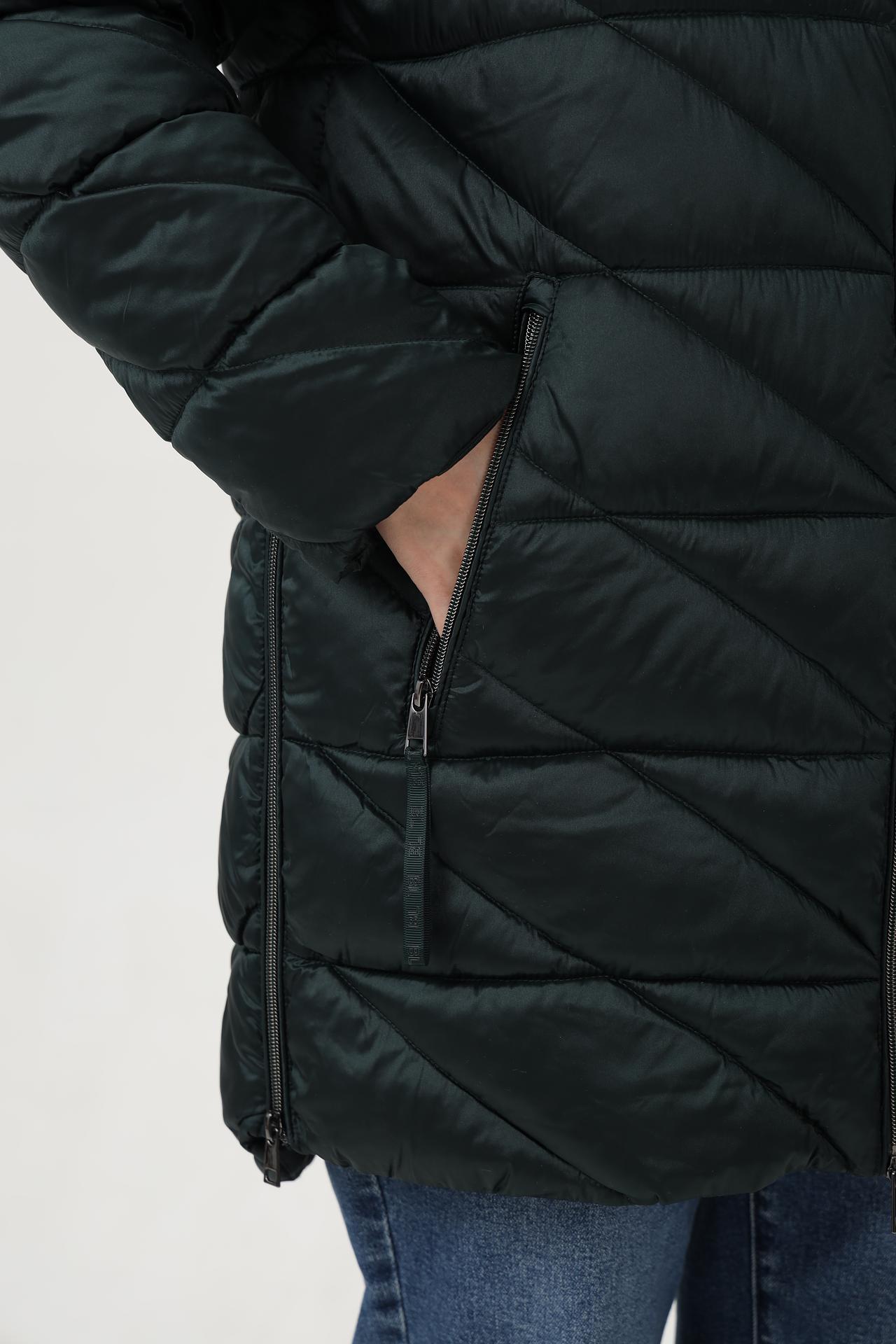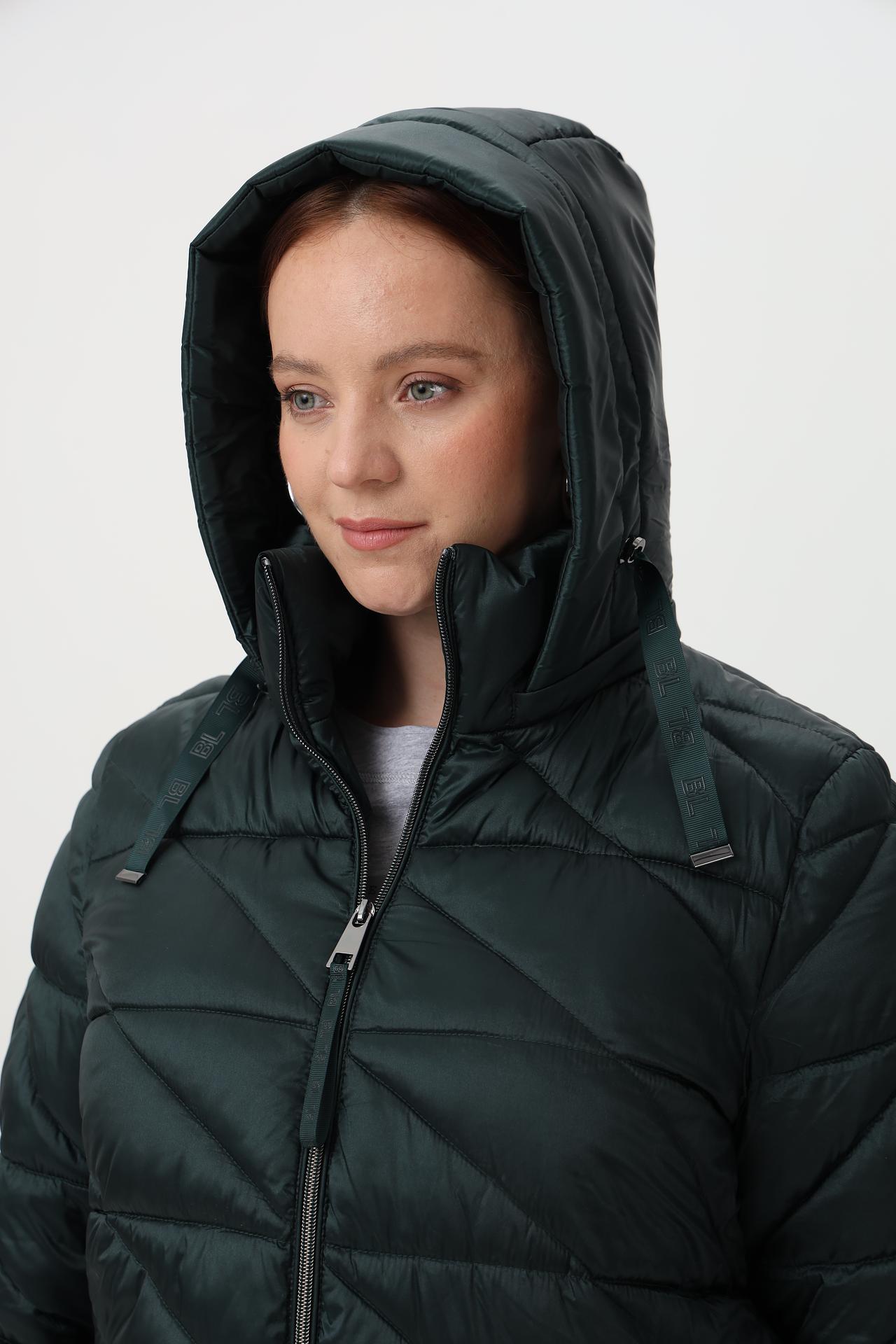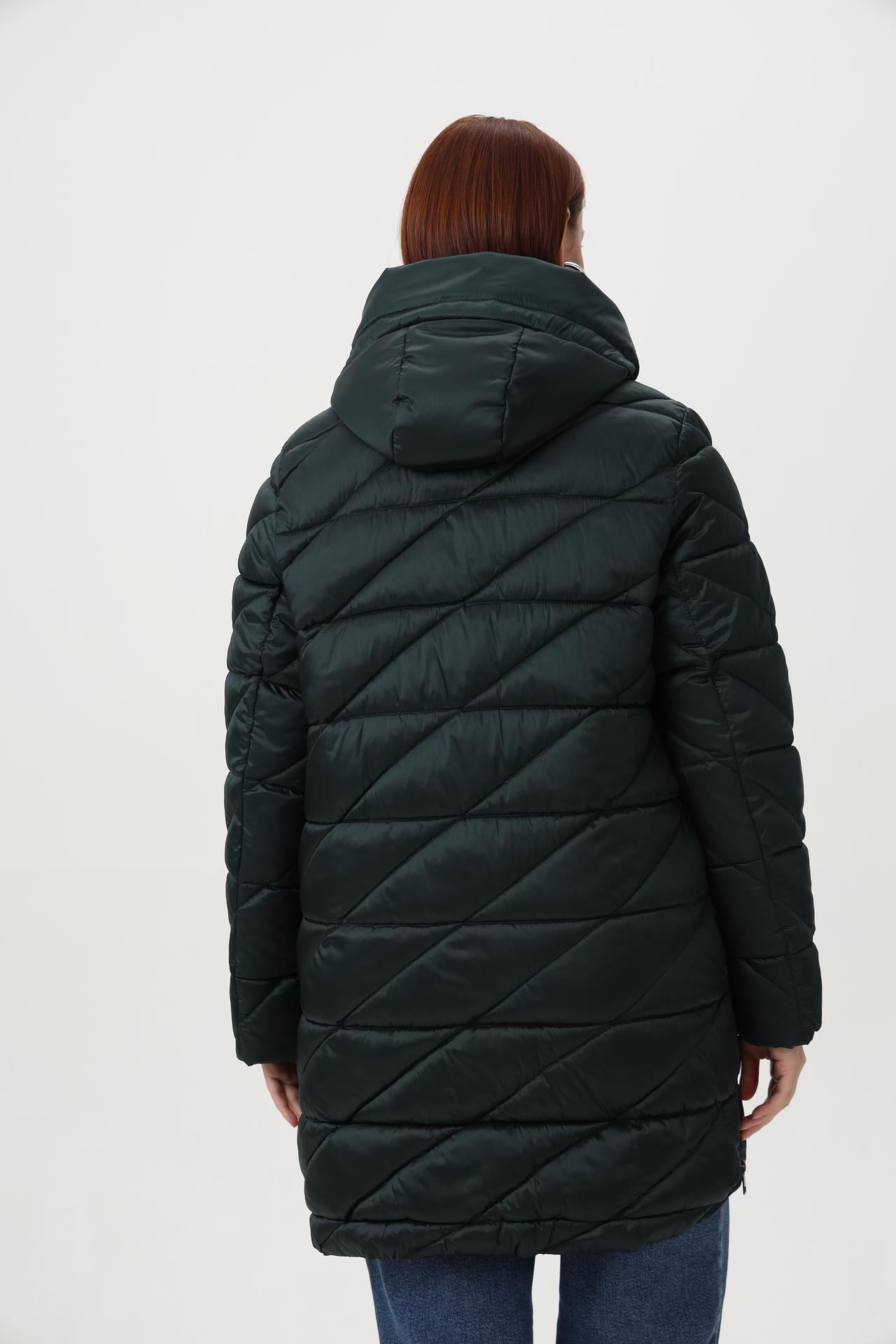 - Дизайн: Удлиненная модель прямого кроя с капюшоном. Оригинальная стежка ромбами придает куртке современный вид. Боковые молнии позволяют регулировать ширину подола.