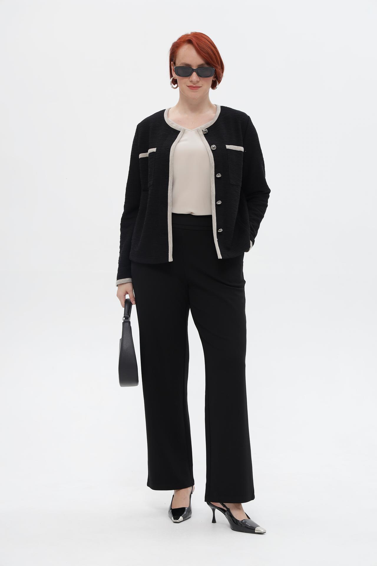 - Комфорт: Благодаря эластичности ткани и продуманному крою, брюки обеспечивают максимальный комфорт в течение всего дня, не сковывая движений.