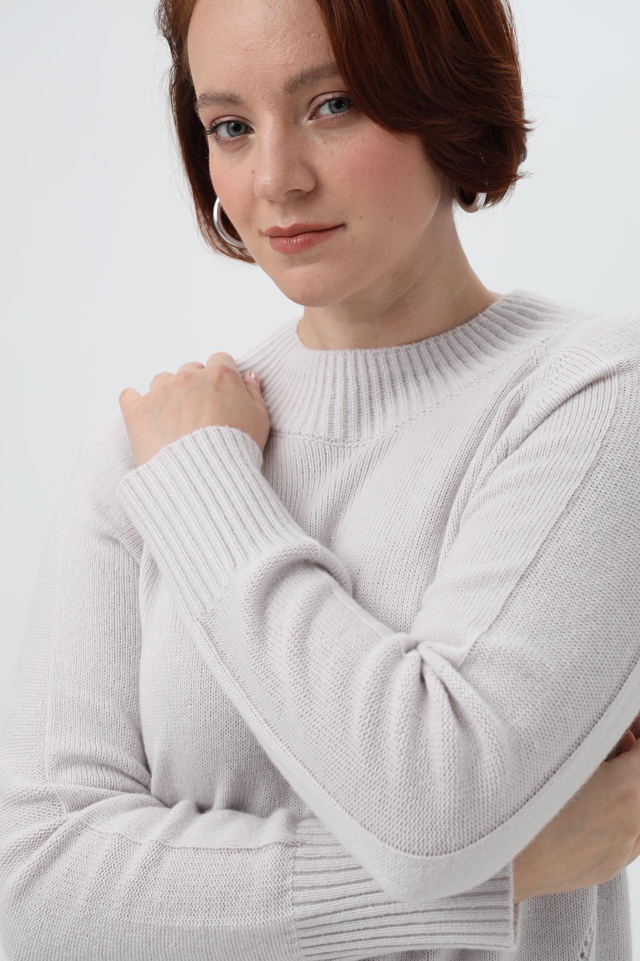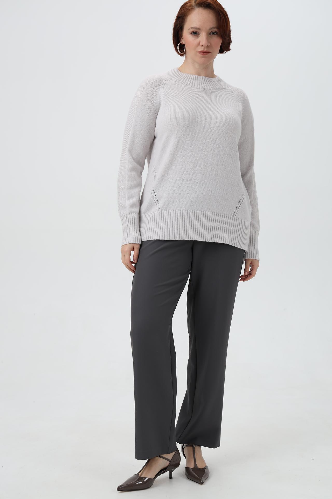 Пуловер легко сочетается с различными предметами гардероба, от классических брюк до джинсов, позволяя создавать разнообразные повседневные и офисные луки. Оригинальные декоративные вставки по бокам добавляют изюминку и подчеркивают утонченный стиль.