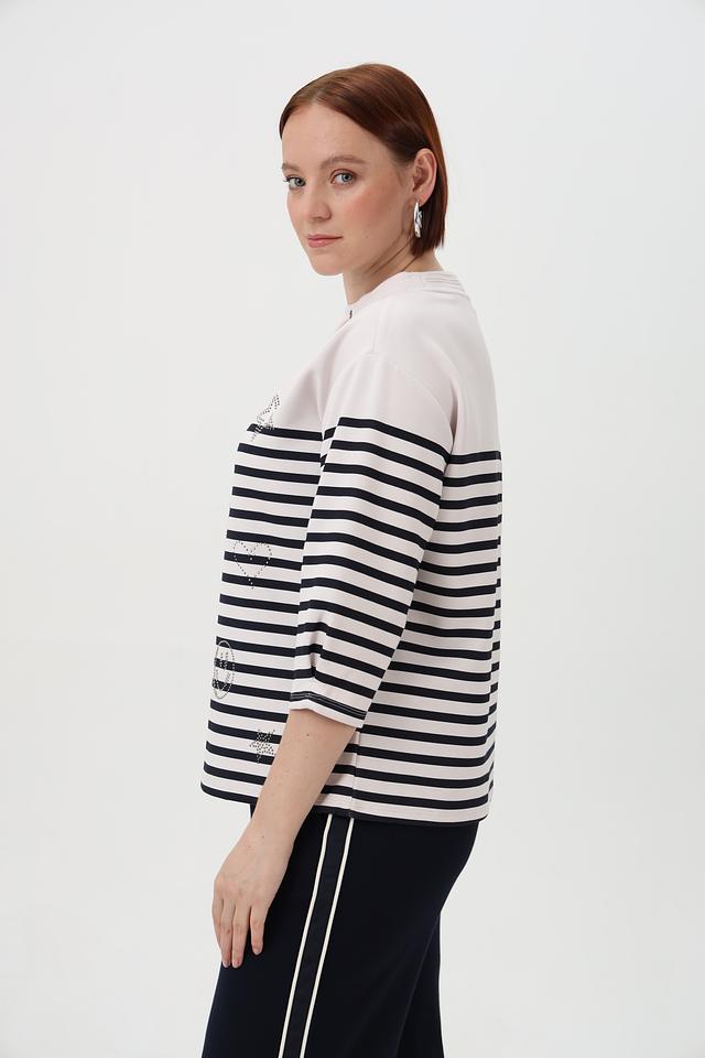 Стильный пуловер Barbara Lebek бело-синей расцветки, украшенный стразами и узорами, станет отличным дополнением к вашему гардеробу. Изготовлен из приятной на ощупь смеси вискозы, полиэстера и эластана. Состав: полиэстер 50%, вискоза 45%, эластан 5%