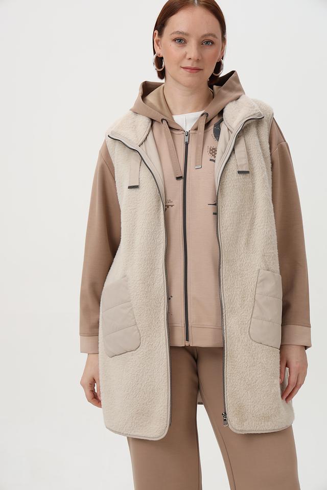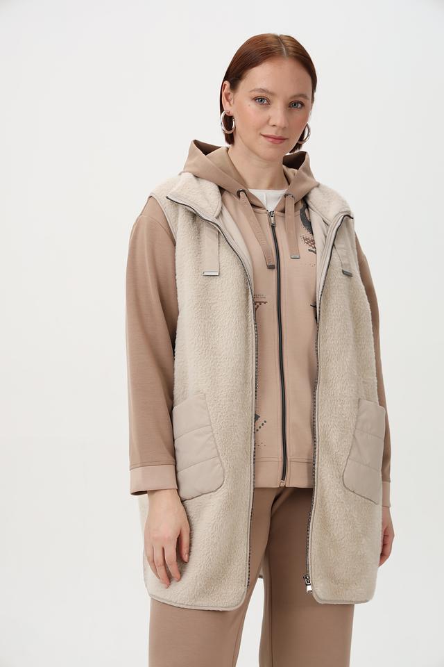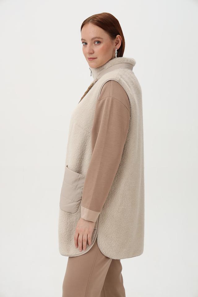 Бежевый жилет Barbara Lebek из мягкого искусственного меха – стильное и комфортное решение для создания многослойных образов. Модель выполнена из сочетания полиэстера и полиамида, имеет застежку-молнию и боковые карманы. Состав: полиамид 62%, полиэстер 38%