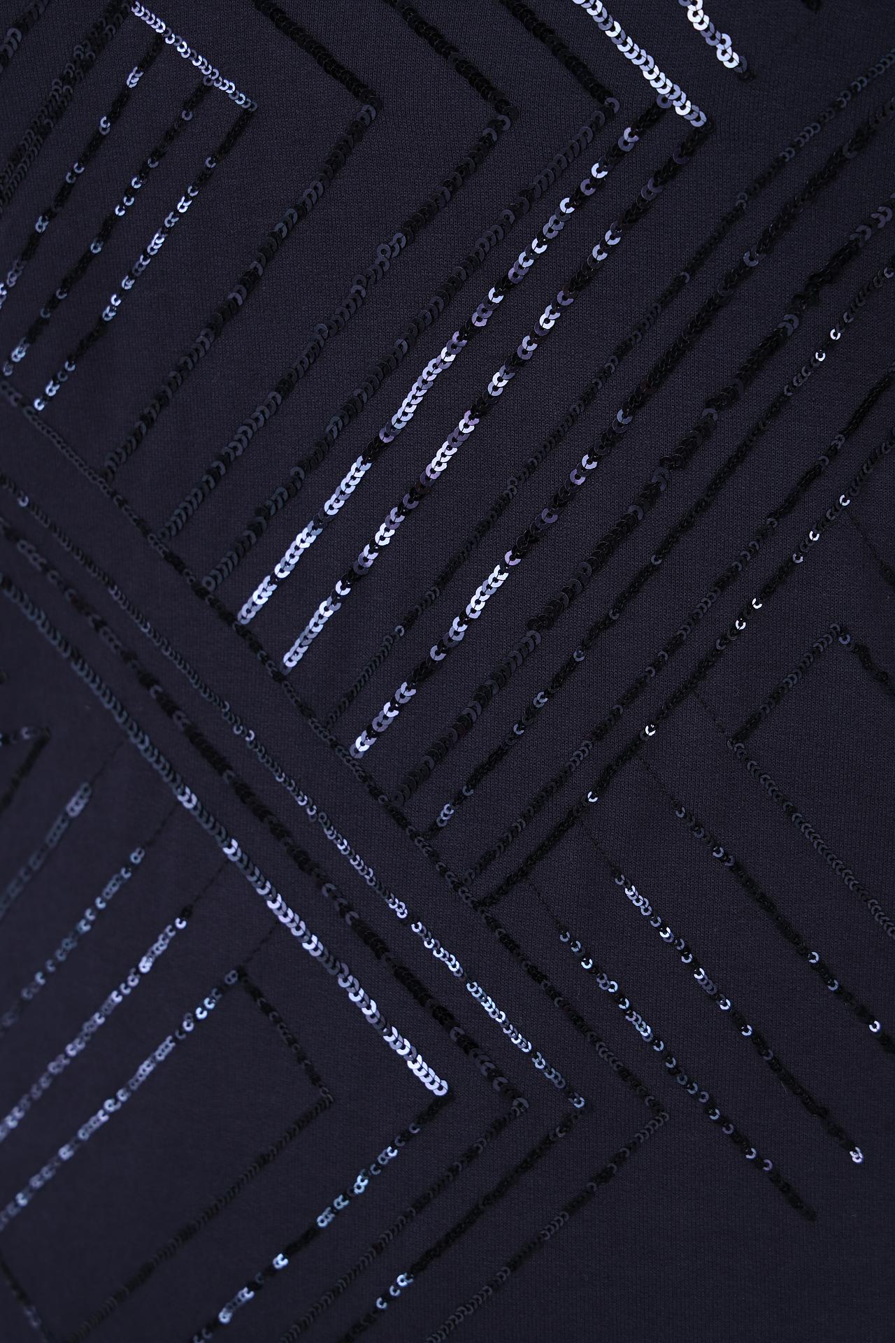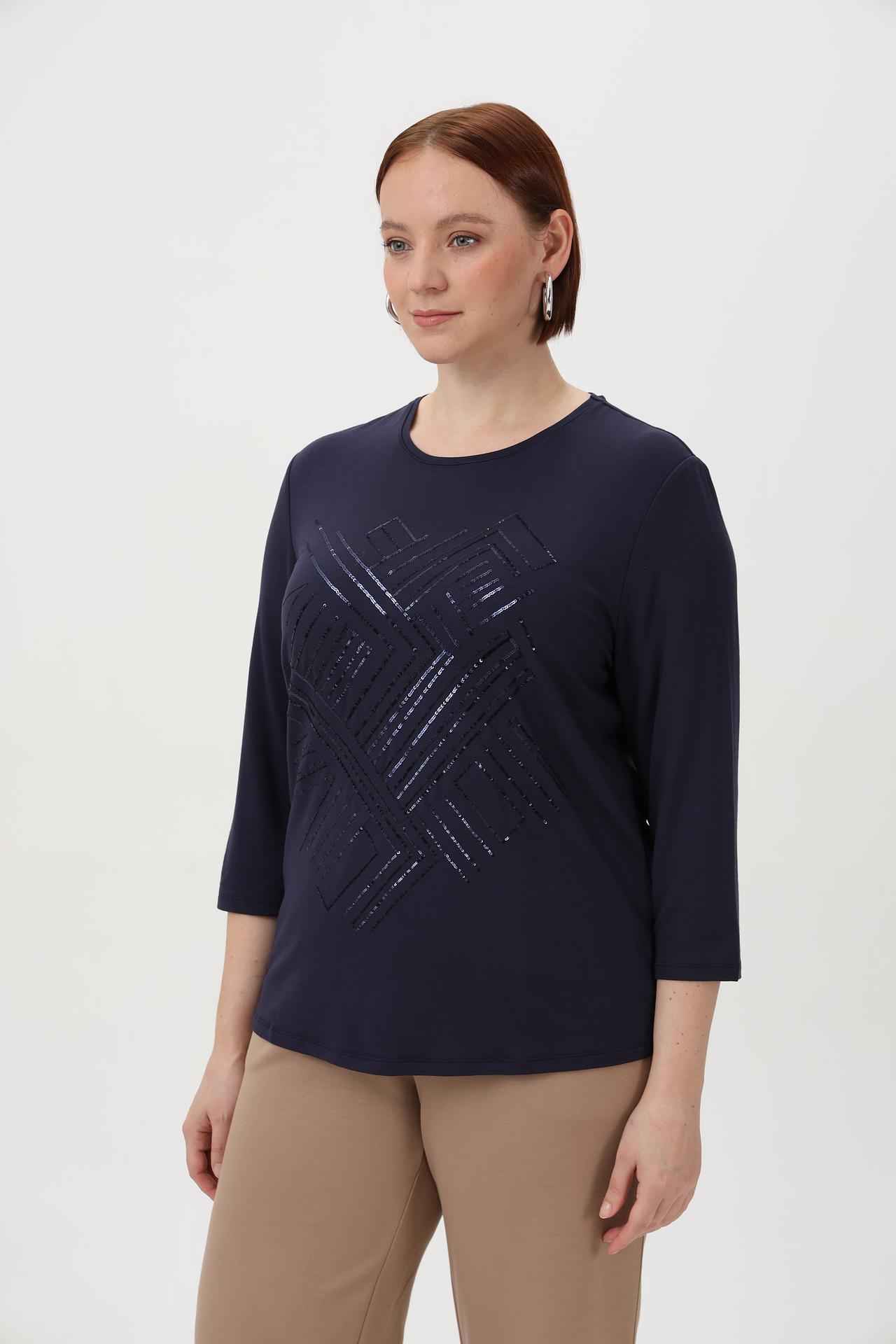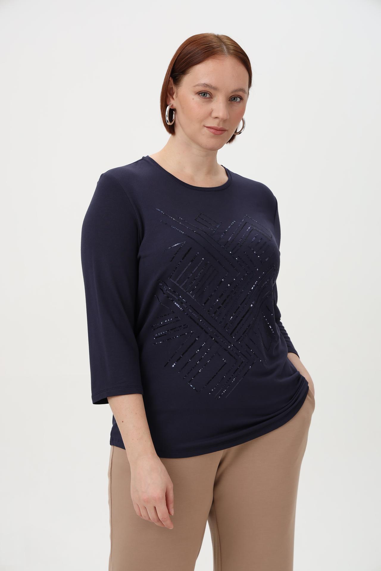- Дизайн: Классический темно-синий цвет и рукава три четверти создают элегантный силуэт. Оригинальная аппликация из пайеток добавит изюминку в ваш образ.
