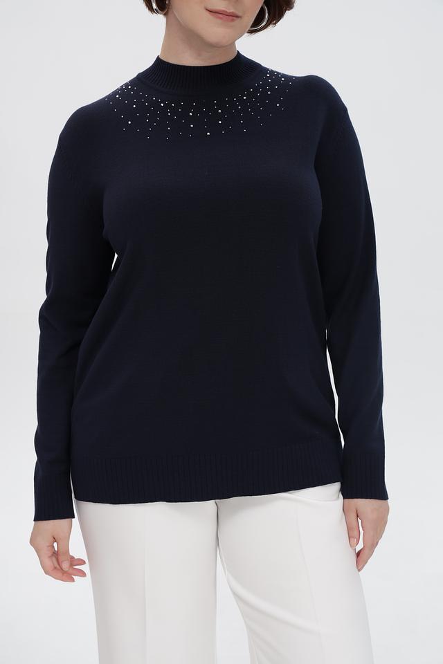 Тёмно-синий пуловер Barbara Lebek с декоративной отделкой из камней. Модель выполнена из мягкого трикотажа с добавлением модала, полиамида и полиакрила. Состав: модал 46%, полиакрил 40%, полиамид 14%