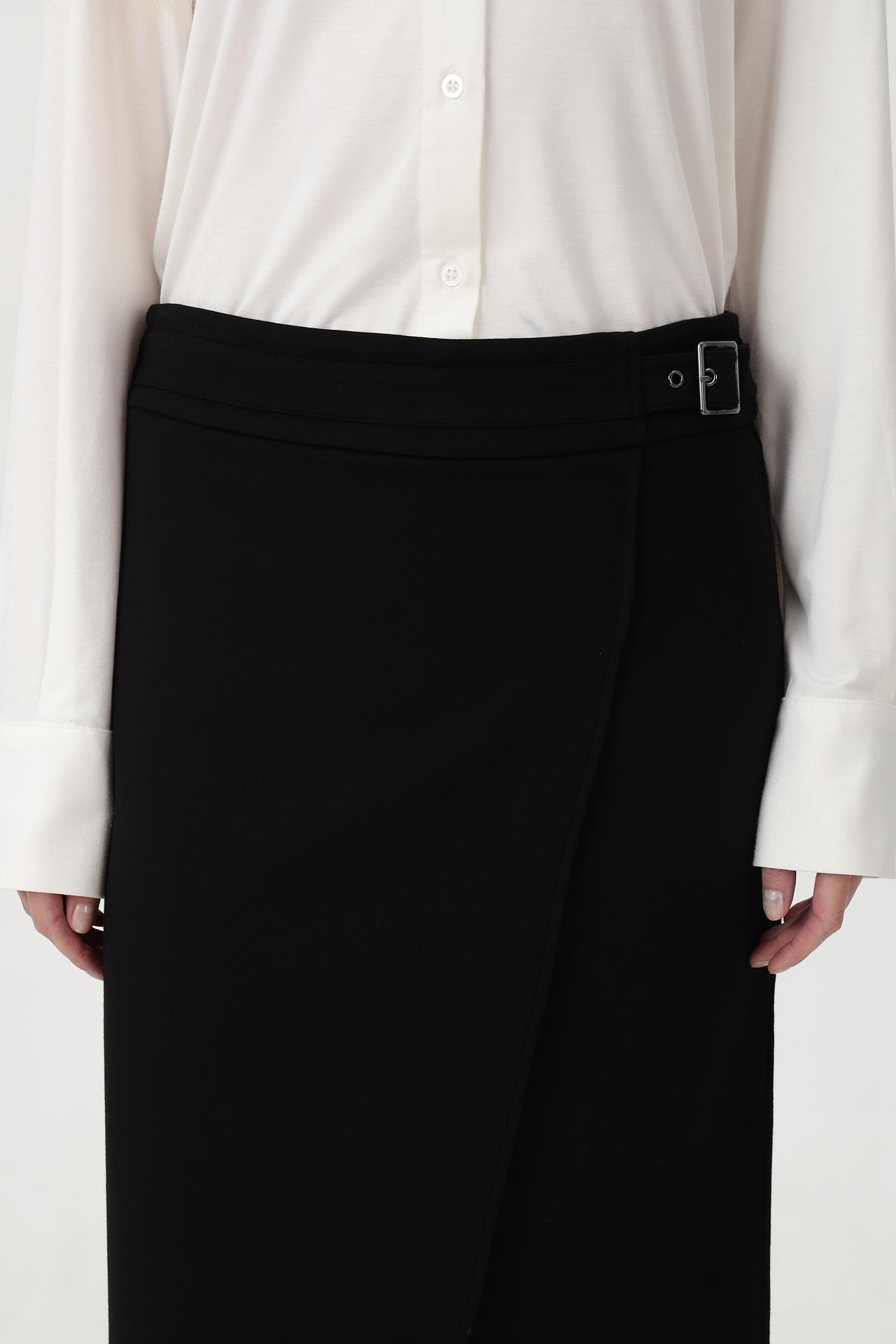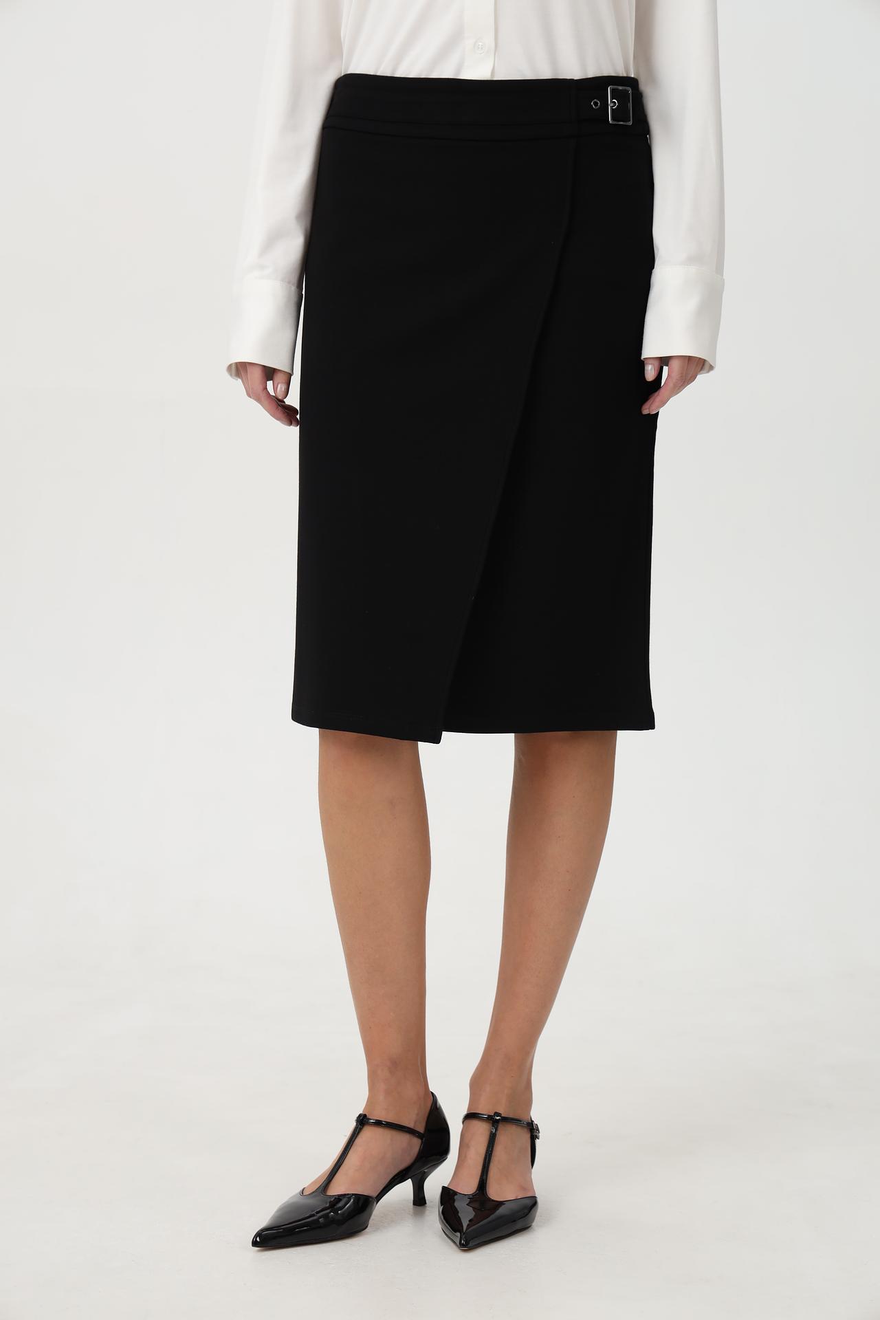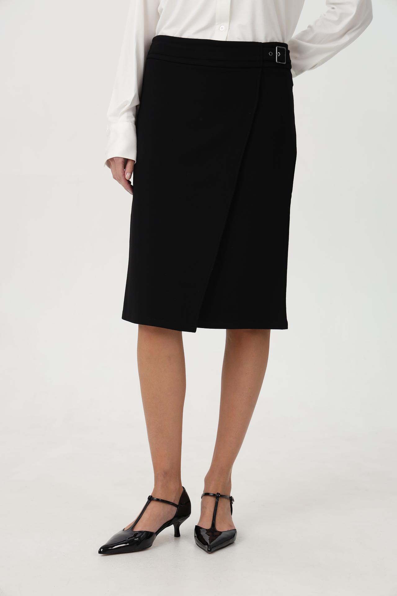 Элегантная юбка Lebek - идеальный выбор для создания утонченного делового образа. Модель прямого кроя с асимметричным запахом выгодно подчеркивает фигуру, а сдержанный черный цвет делает ее универсальной и подходящей для любого случая. Декоративный ремешок на поясе придает юбке изысканности.