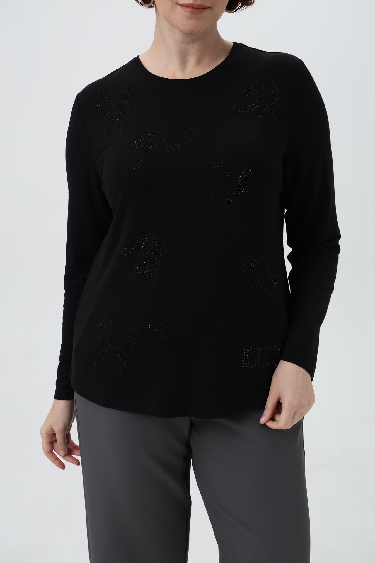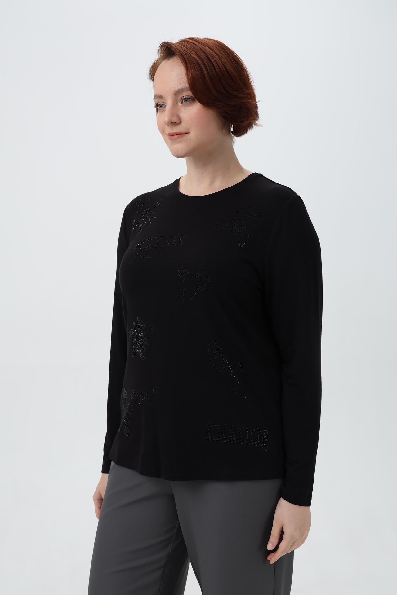 Футболка Lebek - идеальный выбор для создания элегантных и комфортных образов. Модель выполнена из мягкой и приятной к телу вискозы с добавлением эластана, что обеспечивает идеальную посадку и свободу движений. Оригинальный принт из страз придает изделию изысканность и неповторимый шарм.