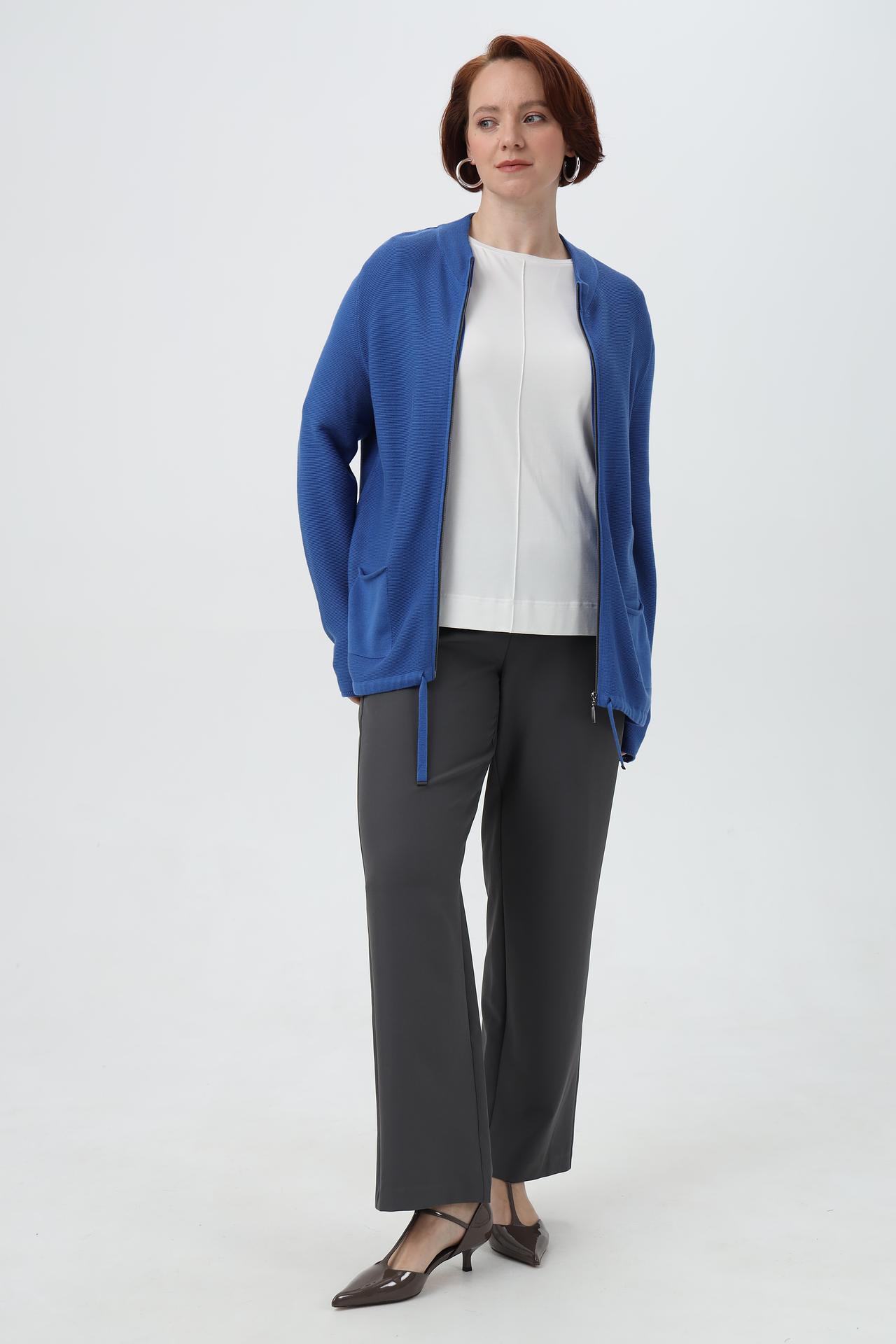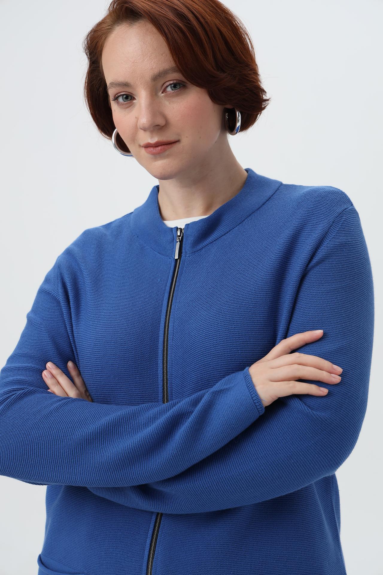 - Дизайн: Жакет прямого кроя с застежкой-молнией по центру. Воротник-стойка и удобные накладные карманы добавляют функциональности.