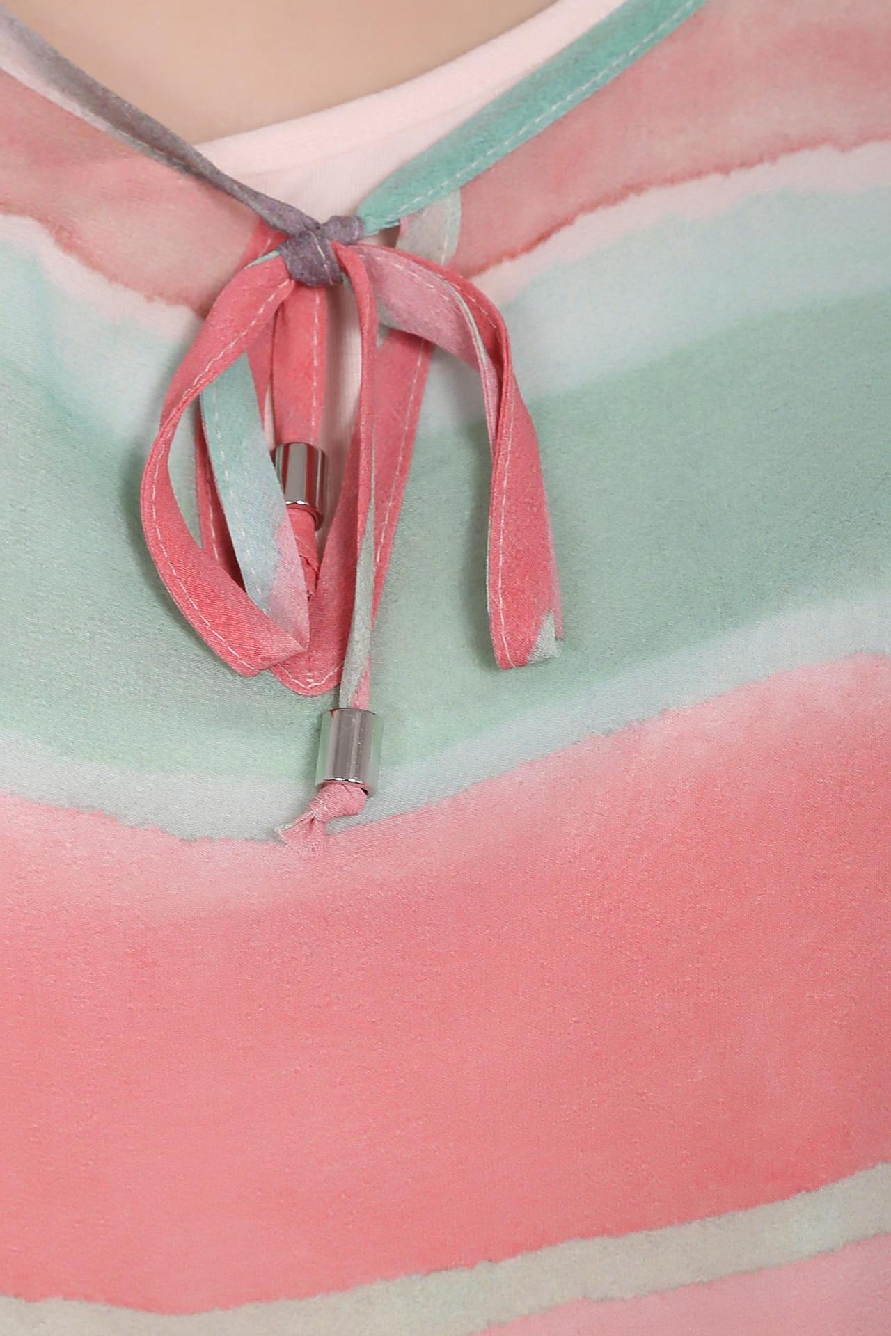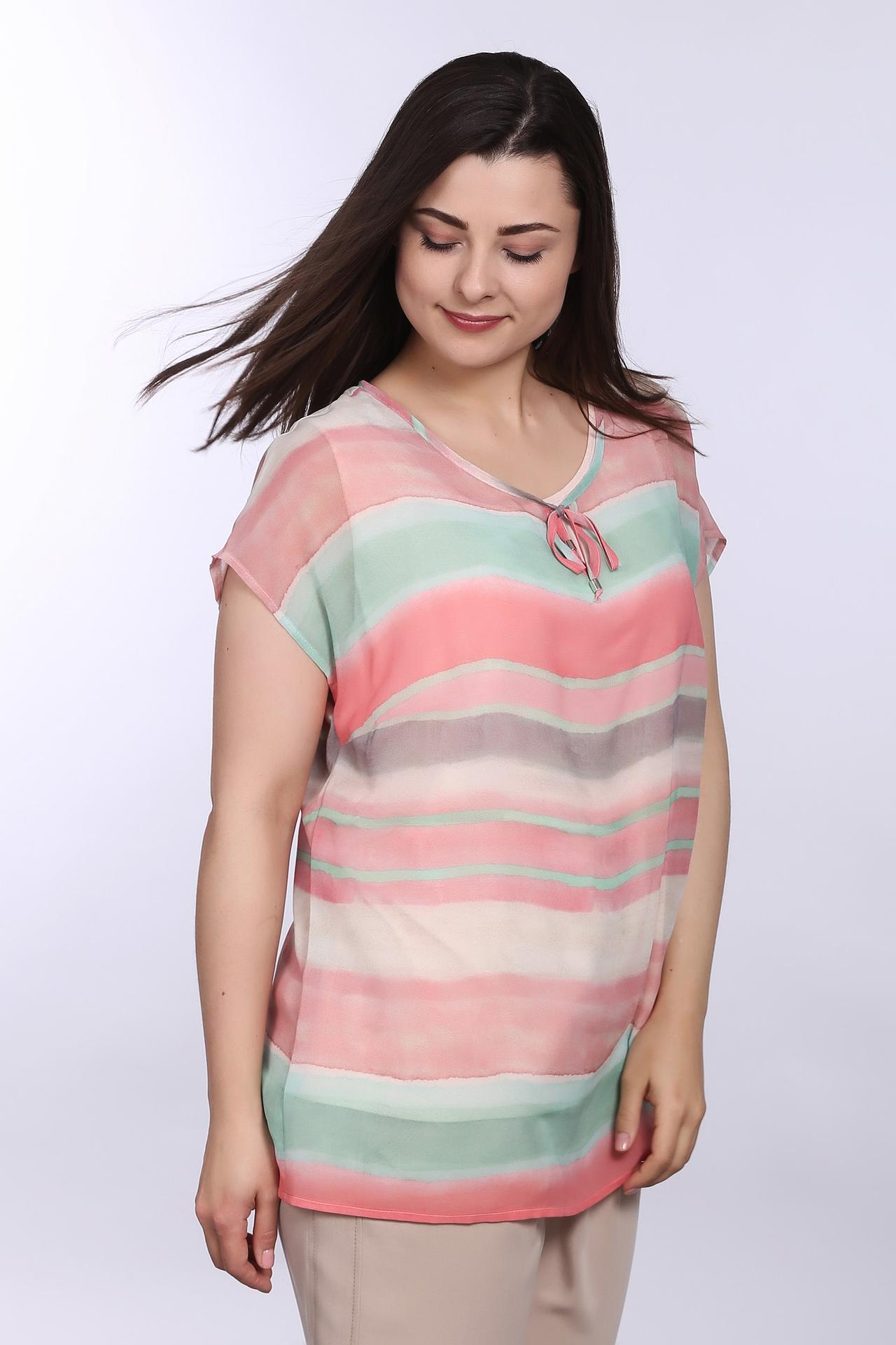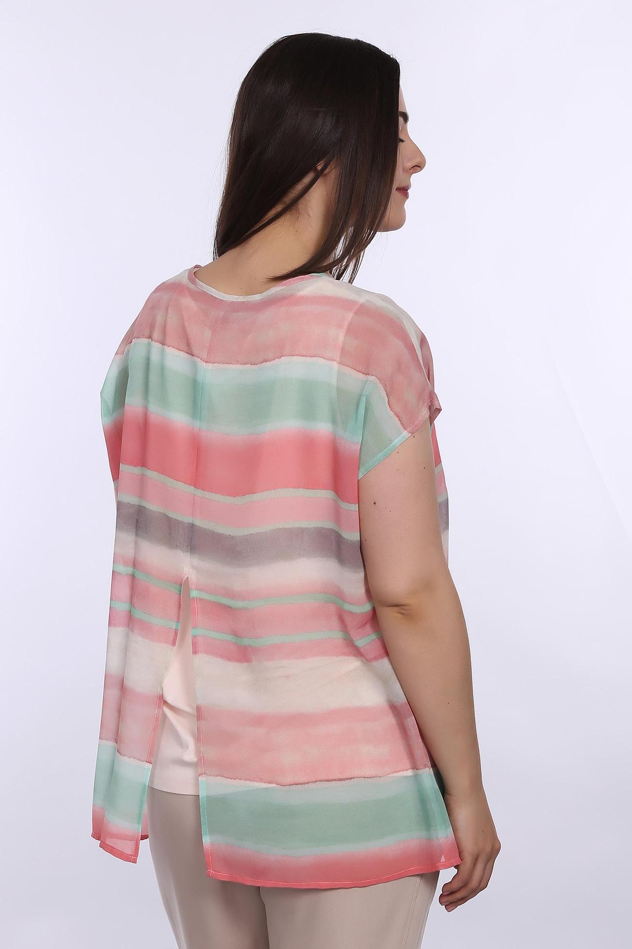 Блуза разноцветного цвета фирмы Lebek. Ткань состоит из 100% полиэстера. Модель выполнена свободным кроем. Блуза дополнена округлым воротом, коротким рукавом, на задней половине V - образный разрез. В теплое время года - прекрасное дополнение к вашему наряду.
