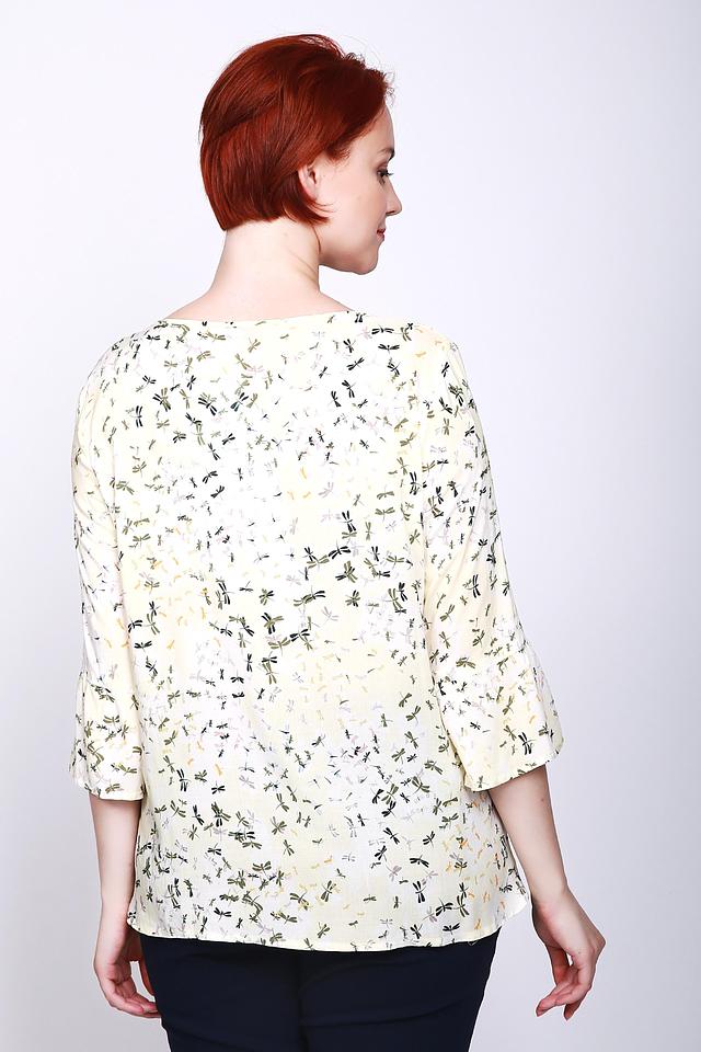 Блуза Lebek желтая с принтом стрекозы и расклешенными рукавами