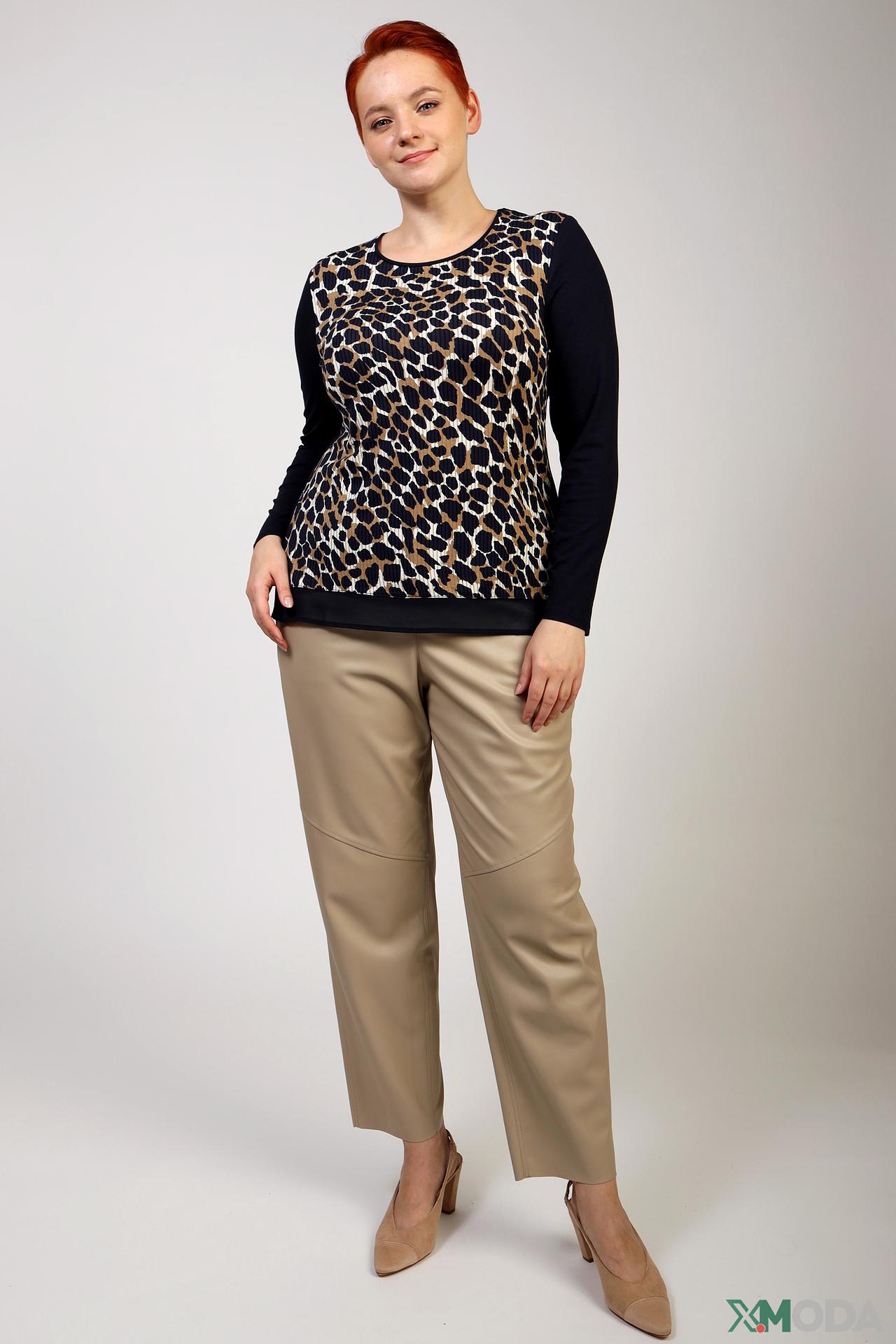 - Дизайн: Лонгслив выполнен в классическом черном цвете с контрастной вставкой на груди, украшенной эффектным леопардовым принтом. Рукава и спинка однотонные, что придает изделию сдержанность и элегантность.