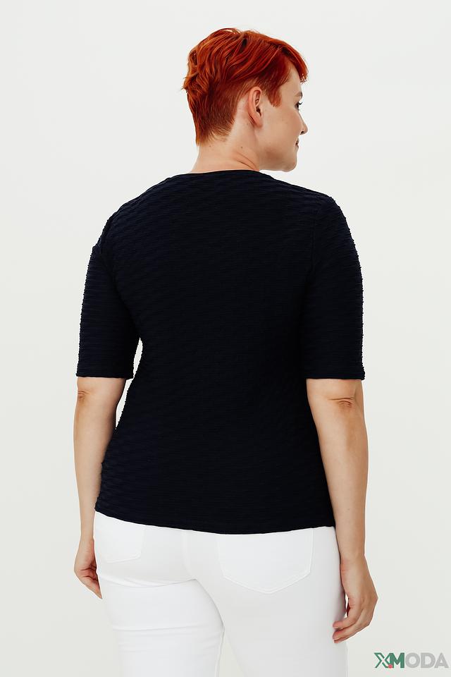 Особенностью данной модели является её текстурированная поверхность, которая придает ей изысканность и оригинальность. Ткань, состоящая из полиэстера, вискозы и эластана, обеспечивает комфорт в носке, приятные тактильные ощущения и хорошую посадку по фигуре. Благодаря эластану, топ отлично тянется и не сковывает движений.