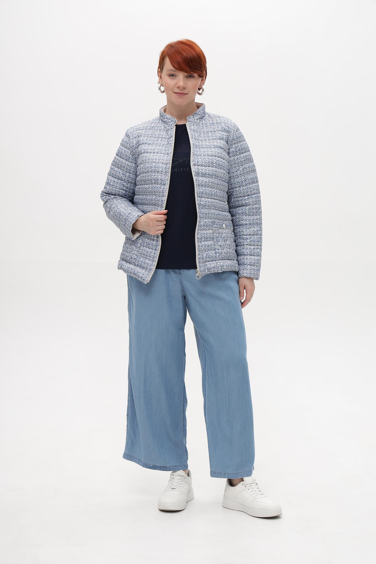 - Стильный принт: Необычный голубой узор украшает куртку, добавляя изюминку в ваш стиль.