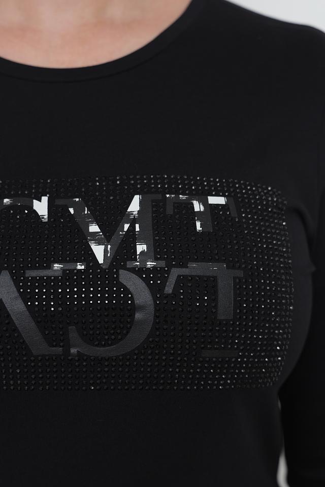 Особенностью модели является оригинальный логотип бренда, выполненный в виде декоративной аппликации с имитацией страз. Это придает лонгсливу изысканность и индивидуальность.