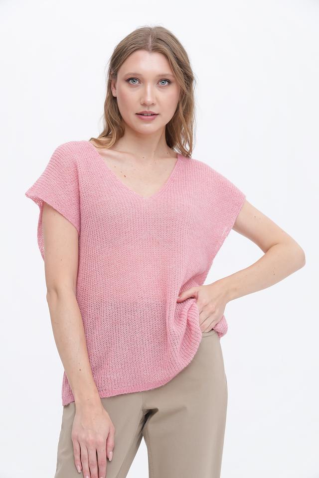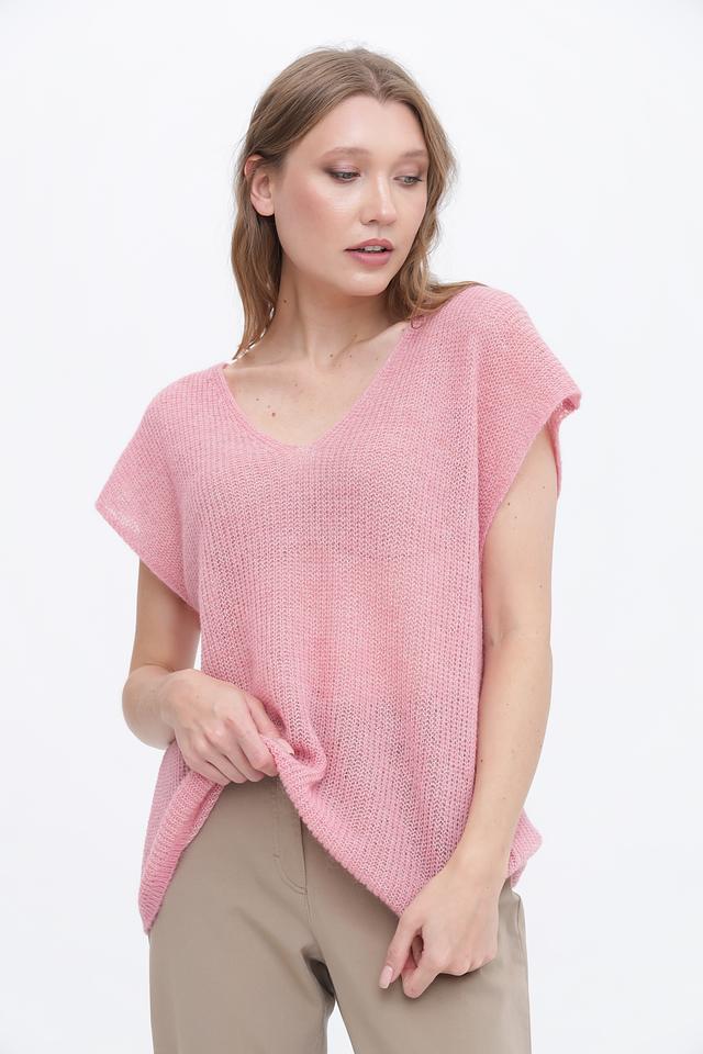 Жилет Lecomte розовый вязаный с V-образным вырезом