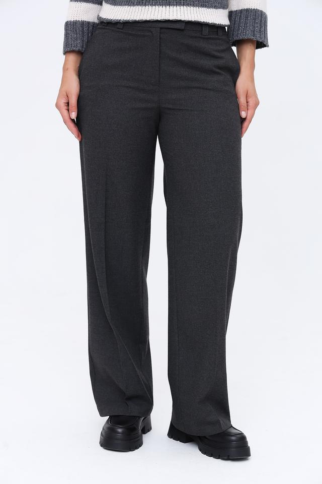 Брюки имеют прямой крой и стандартную посадку по талии. Застежка на молнию и пуговицу обеспечивает надежную фиксацию. По бокам расположены функциональные карманы.