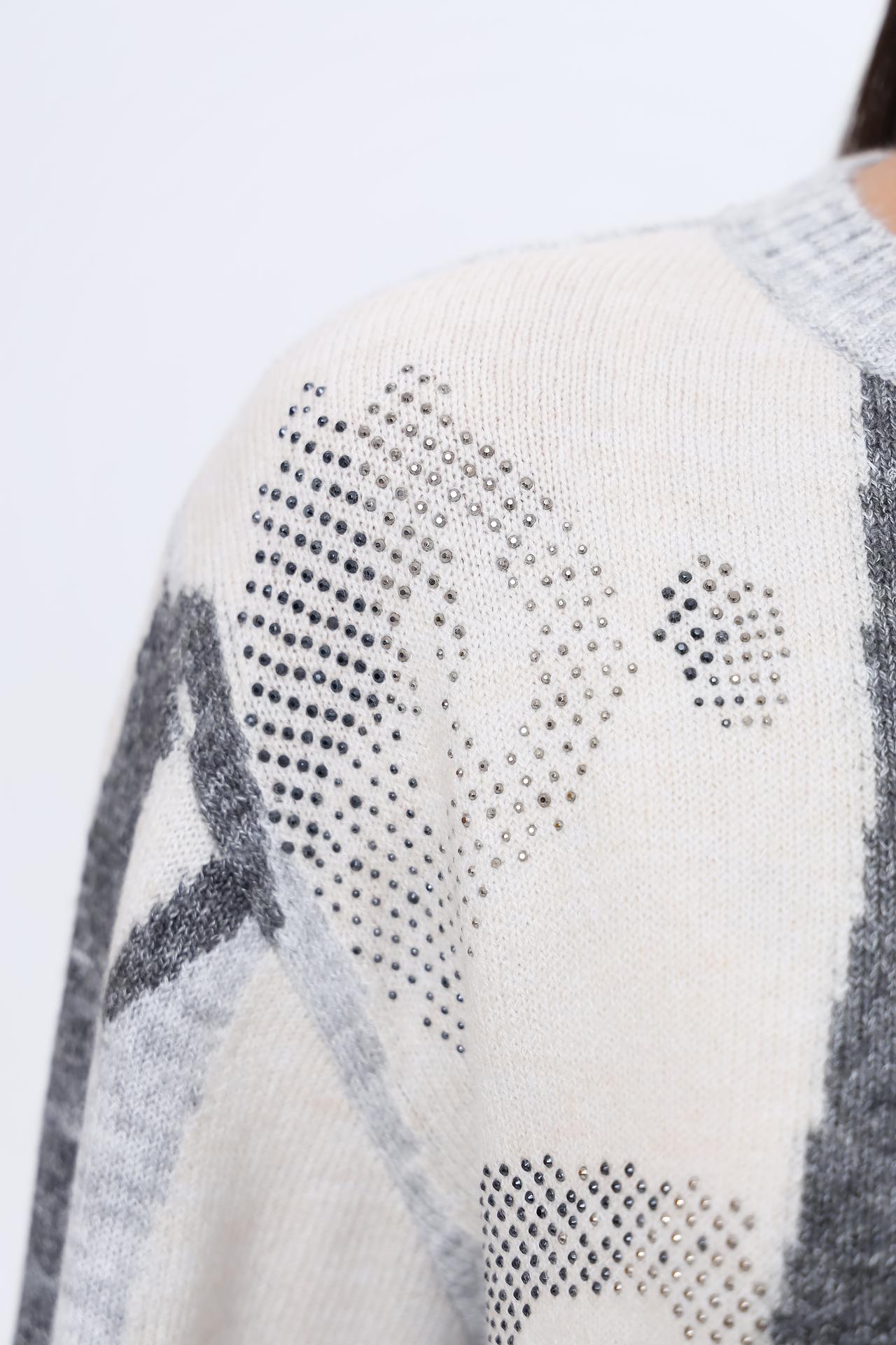 Пуловер Lecomte серый с принтом и стразами