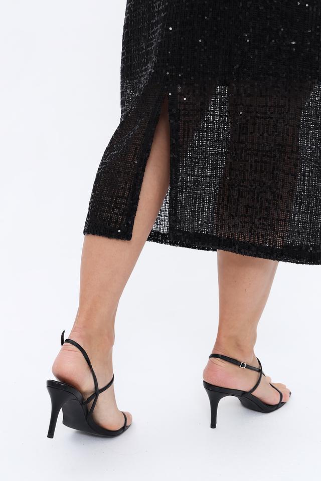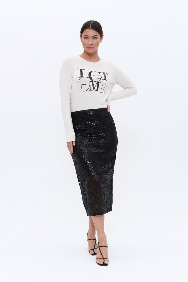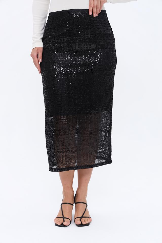 Черная юбка Lecomte, выполненная из полиэстера с пайетками, станет эффектным дополнением к вашему образу. Прямой крой и длина миди подчеркнут фигуру и подойдут для создания вечерних и праздничных луков. Состав: полиэстер 100%