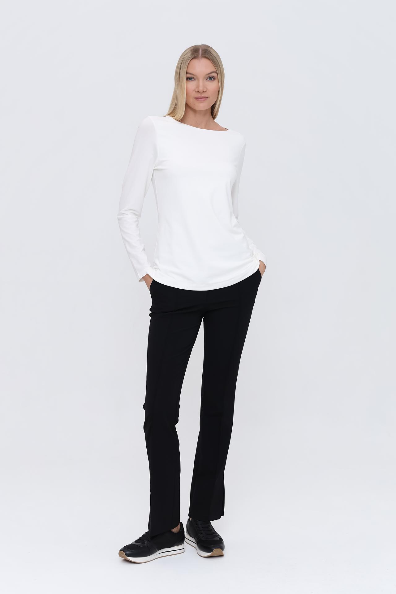 - Крой: Прямой крой брюк обеспечивает свободное облегание и комфорт при движении. Декоративный шов спереди визуально удлиняет ноги.