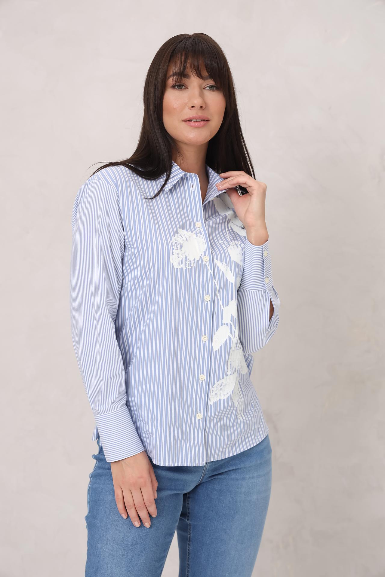 Элегантная женская рубашка с длинным рукавом от бренда Lecomte. Модель выполнена из премиального хлопка с добавлением эластана и полиамида, обеспечивая комфорт и долговечность. Вертикальная полоска визуально стройнит силуэт, а оригинальный цветочный принт добавляет образу нежности и романтичности. Идеальный выбор для создания стильного и неповторимого образа.