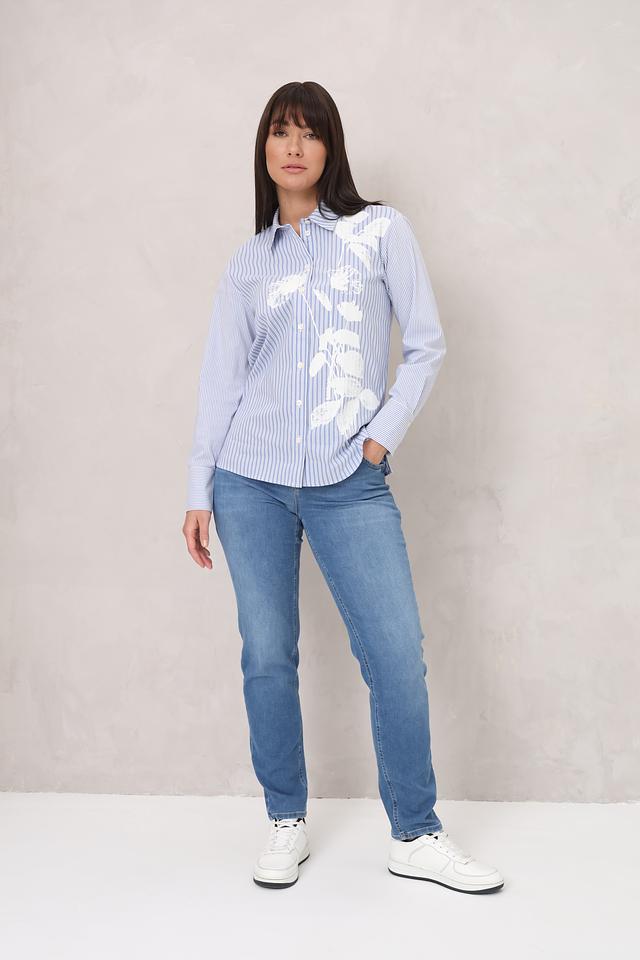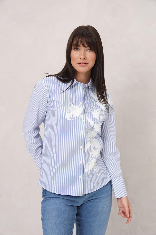 Голубая рубашка Lecomte с длинным рукавом, украшенная цветочной вышивкой. Изготовлена из хлопка с добавлением полиамида и эластана для комфорта и долговечности. Стильный и универсальный вариант для создания повседневных образов. Состав: хлопок 72%, полиамид 25%, эластан 3%