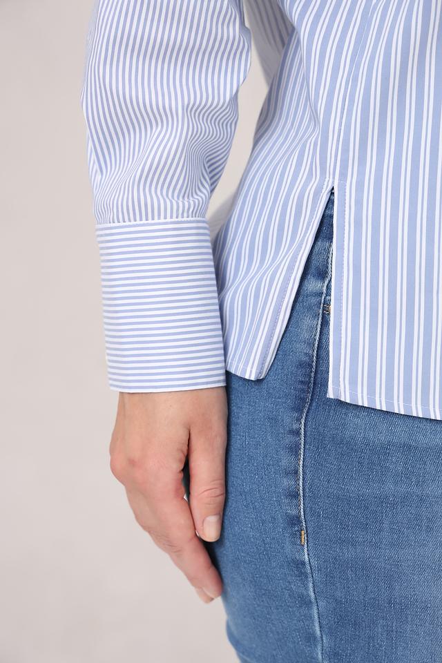Рубашка имеет классический крой с длинными рукавами и отложным воротником. Она изготовлена из высококачественного хлопка, который обеспечивает комфорт и воздухопроницаемость. Добавление полиамида и эластана делает рубашку более прочной и эластичной, что позволяет ей хорошо держать форму и не мяться.