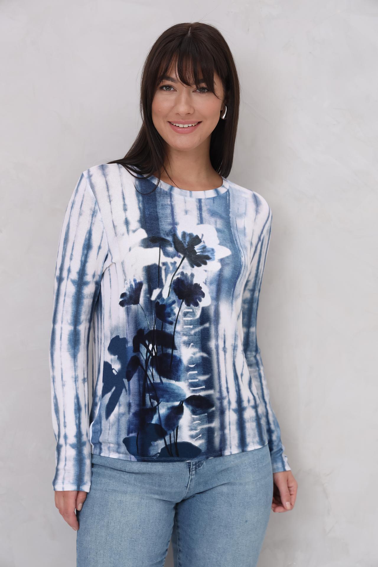 Изящный лонгслив из мягкой и приятной к телу ткани, идеальный для создания стильных и комфортных образов. Оригинальный принт в технике тай-дай с цветочным мотивом придает изделию неповторимый шарм. Лонгслив прекрасно сочетается с джинсами, юбками и брюками, позволяя создавать разнообразные комплекты для любого случая. Состав: 95% вискоза, 5% эластан.