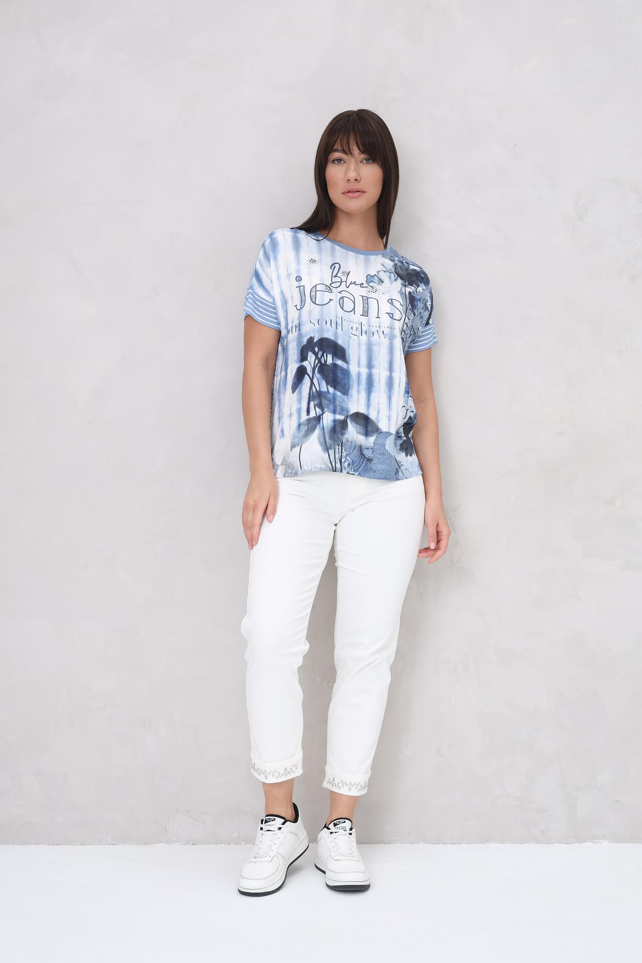 Освежите свой гардероб с этой стильной футболкой Lecomte! Изготовленная из мягкой и приятной к телу вискозы с добавлением эластана, она подарит вам ощущение комфорта на протяжении всего дня. Оригинальный принт и интересный рисунок делают эту футболку прекрасным выбором для создания яркого и запоминающегося образа. Идеально сочетается с джинсами, шортами или юбками.