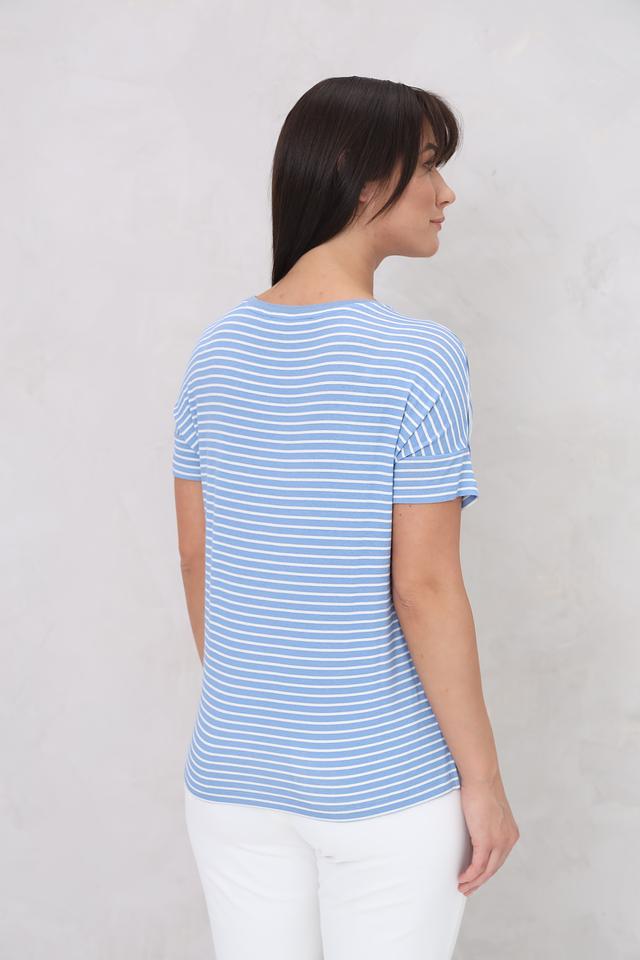 Женская футболка Lecomte голубого цвета с ярким принтом и коротким рукавом. Модель выполнена из мягкой вискозы с добавлением эластана, обеспечивающего комфортную посадку. Идеальный выбор для создания стильного повседневного образа. Состав: вискоза 96%, эластан 4%