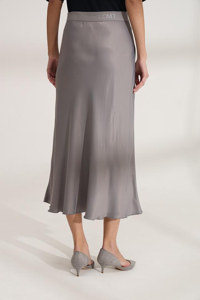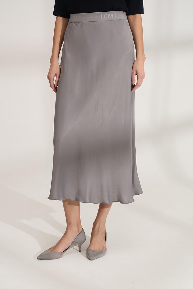Стильная юбка Lecomte серого цвета выполнена из гладкой атласной ткани. Модель имеет эластичный пояс с логотипом бренда и свободный крой, обеспечивающий комфорт и свободу движений. Состав: вискоза 100%