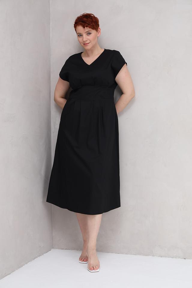 Платье изготовлено из высококачественного хлопка с добавлением эластана (97% хлопок, 3% эластан), что обеспечивает мягкость, воздухопроницаемость и небольшую эластичность. Такой состав приятен к телу и не сковывает движения. Платье идеально подходит для повседневной носки, а также для создания более формальных образов.
