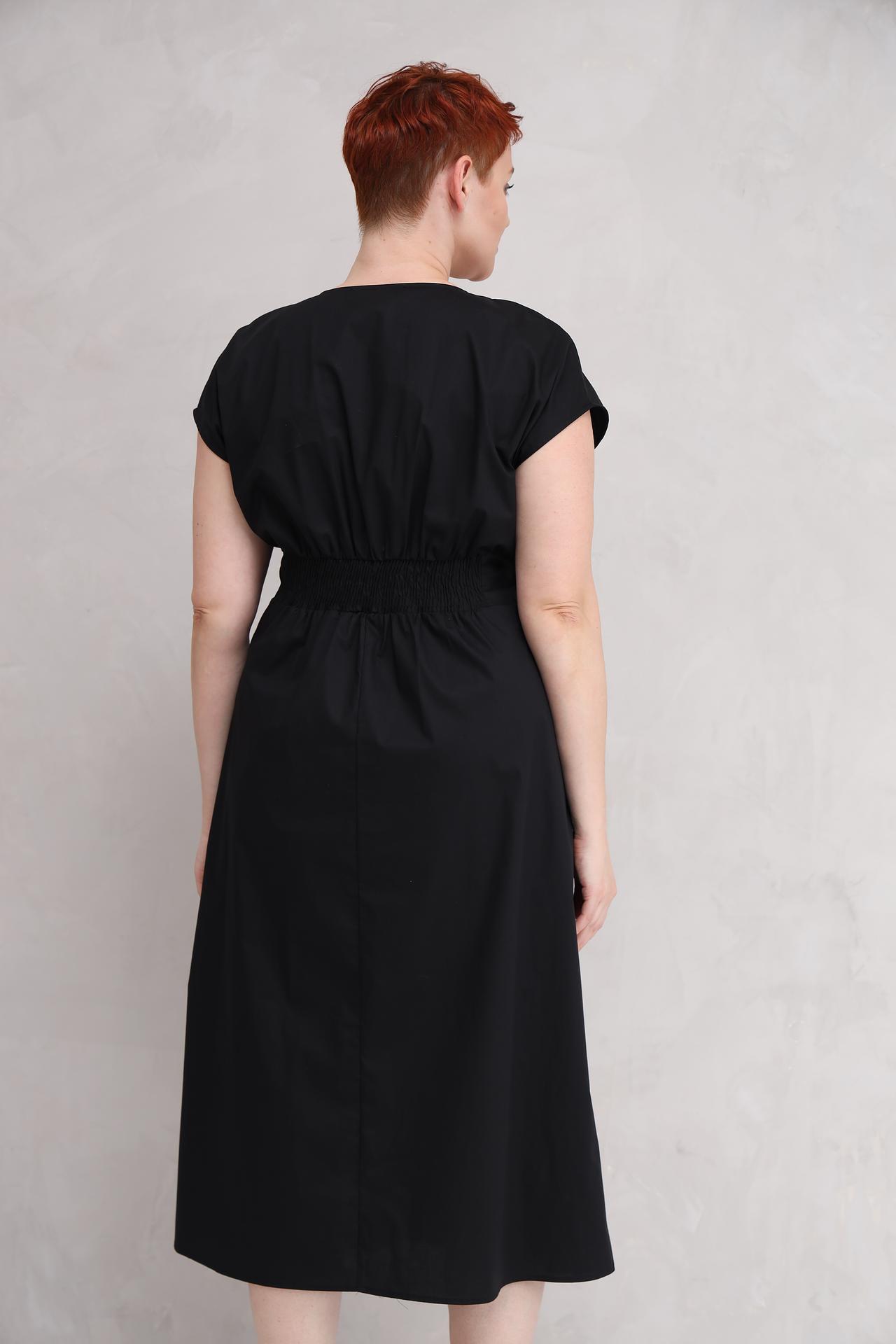 - Состав: Материал платья состоит на 97% из хлопка с добавлением 3% эластана. Хлопок обеспечивает воздухопроницаемость и комфорт, а эластан придает ткани небольшую растяжимость и помогает сохранить форму изделия.