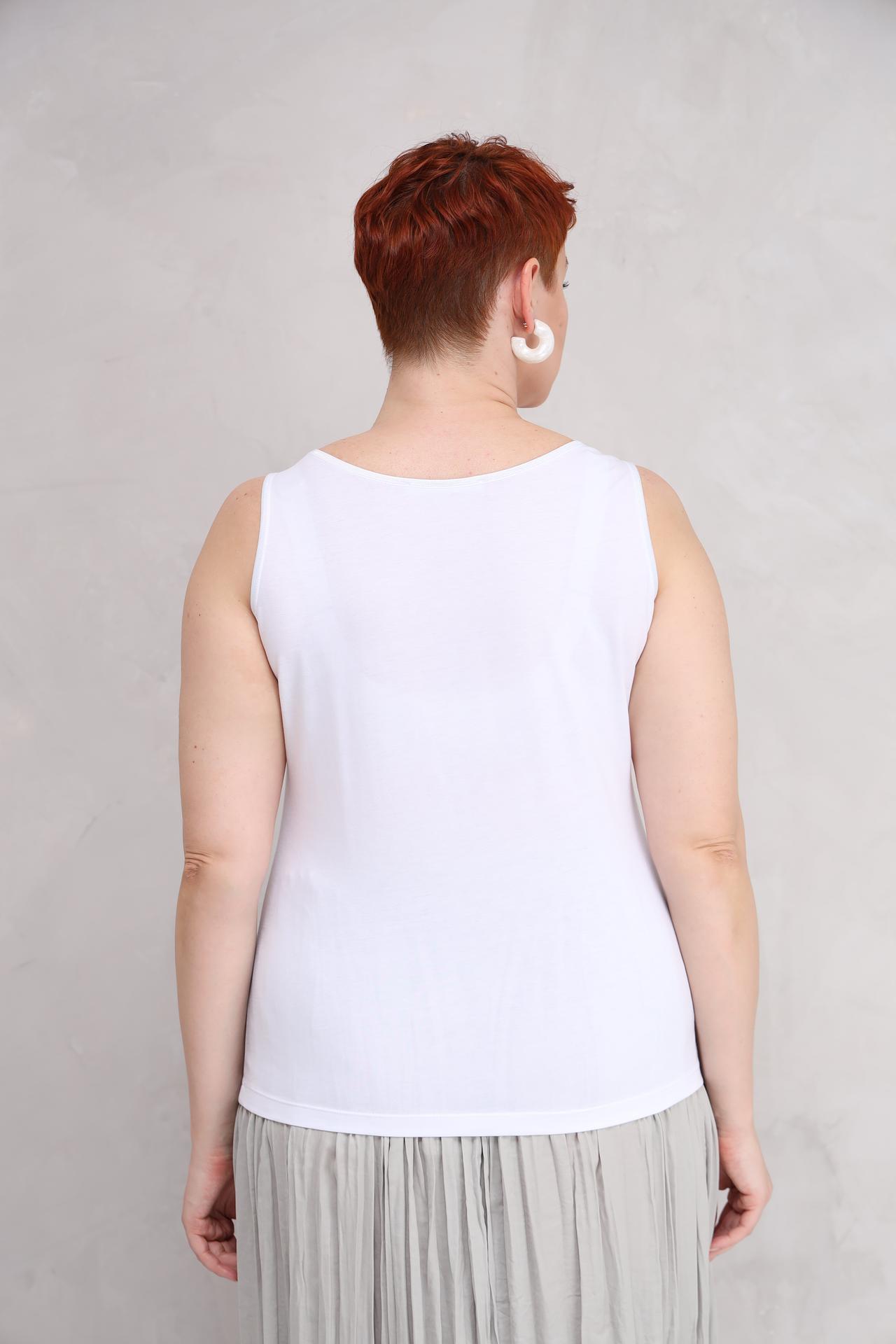 - Универсальный дизайн: Классический белый цвет и минималистичный дизайн позволяют легко комбинировать топ с различными элементами гардероба — от джинсов до элегантных юбок. Это базовая вещь, которая всегда будет актуальна.