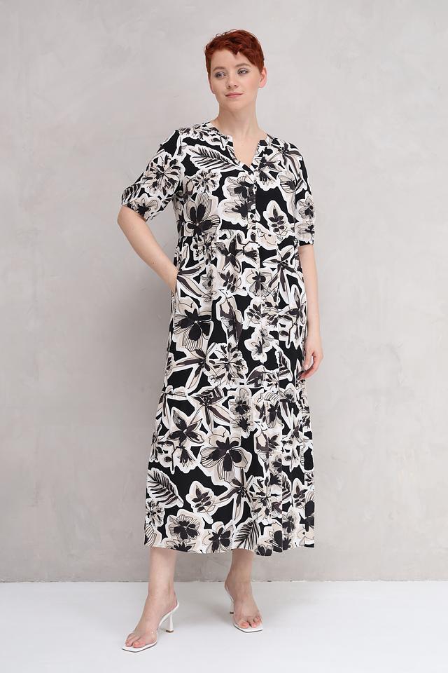 Платье Lecomte чёрно-белого цвета с ярким цветочным принтом – идеальный выбор для создания лёгкого и стильного образа. Модель выполнена из мягкой вискозы, обеспечивающей комфорт в носке. Состав: вискоза 100%