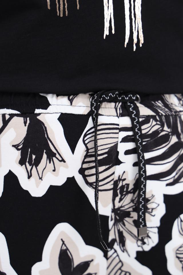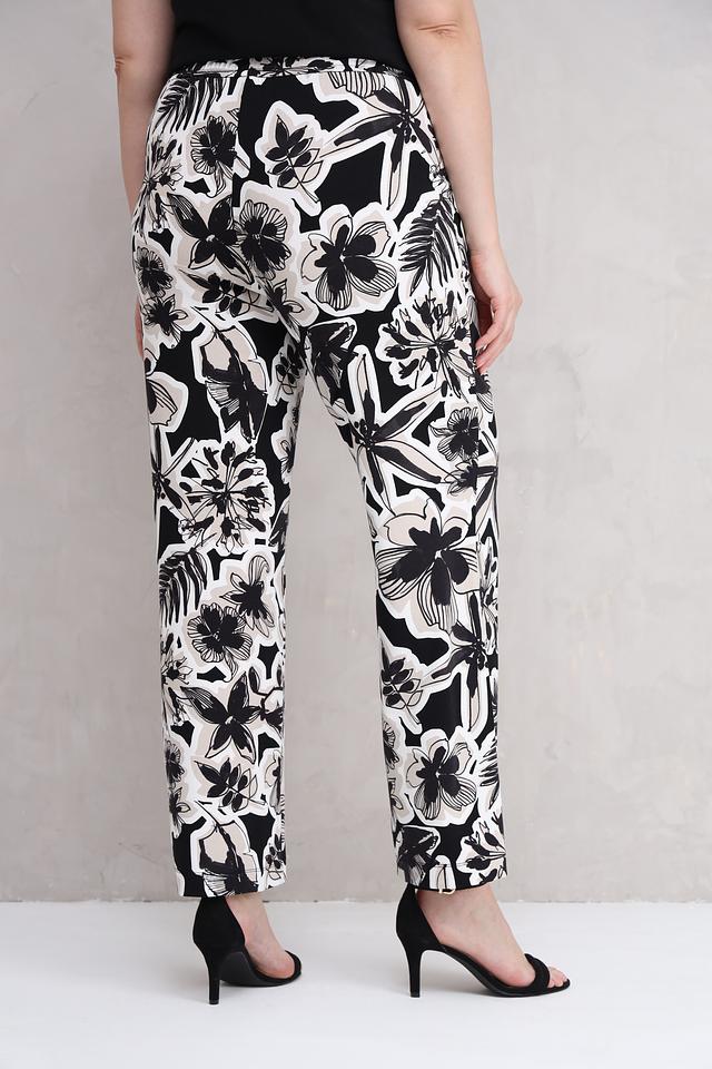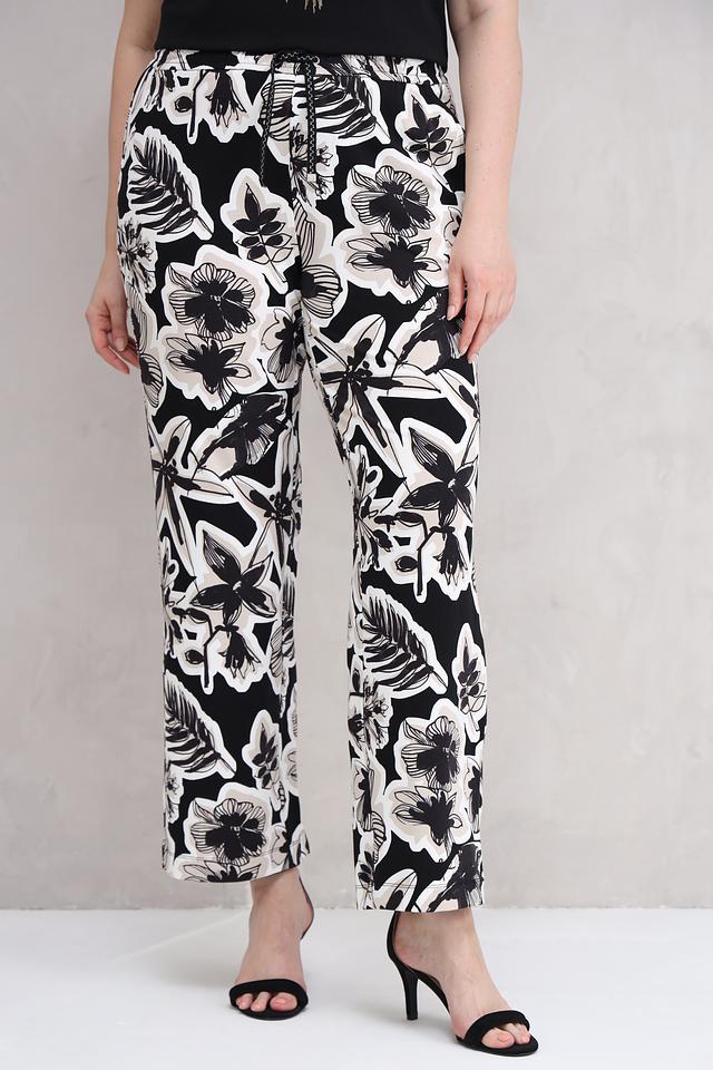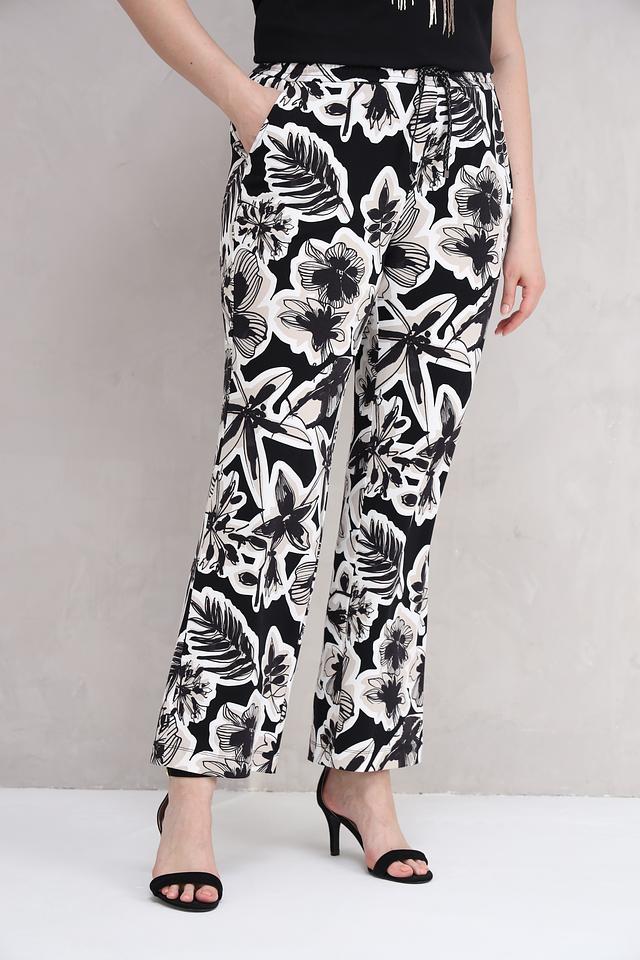 Женские брюки Lecomte чёрного цвета с ярким цветочным принтом – стильное и комфортное решение для создания модных образов. Модель выполнена из мягкой вискозы с добавлением эластана, обеспечивающего удобную посадку. Состав: вискоза 92%, эластан 8%