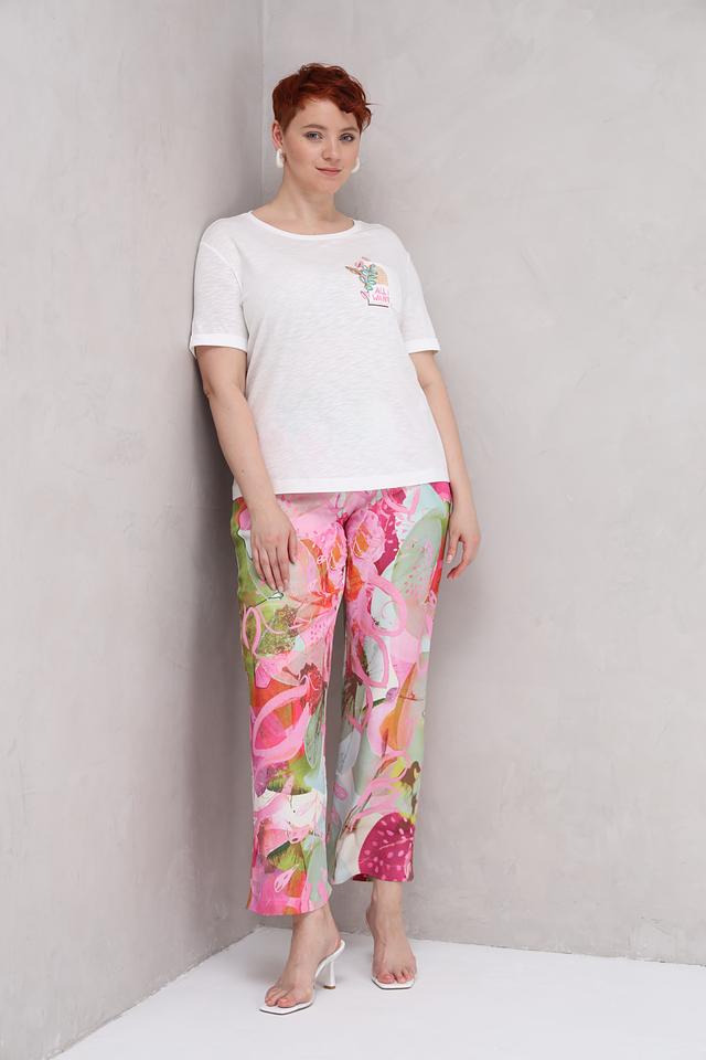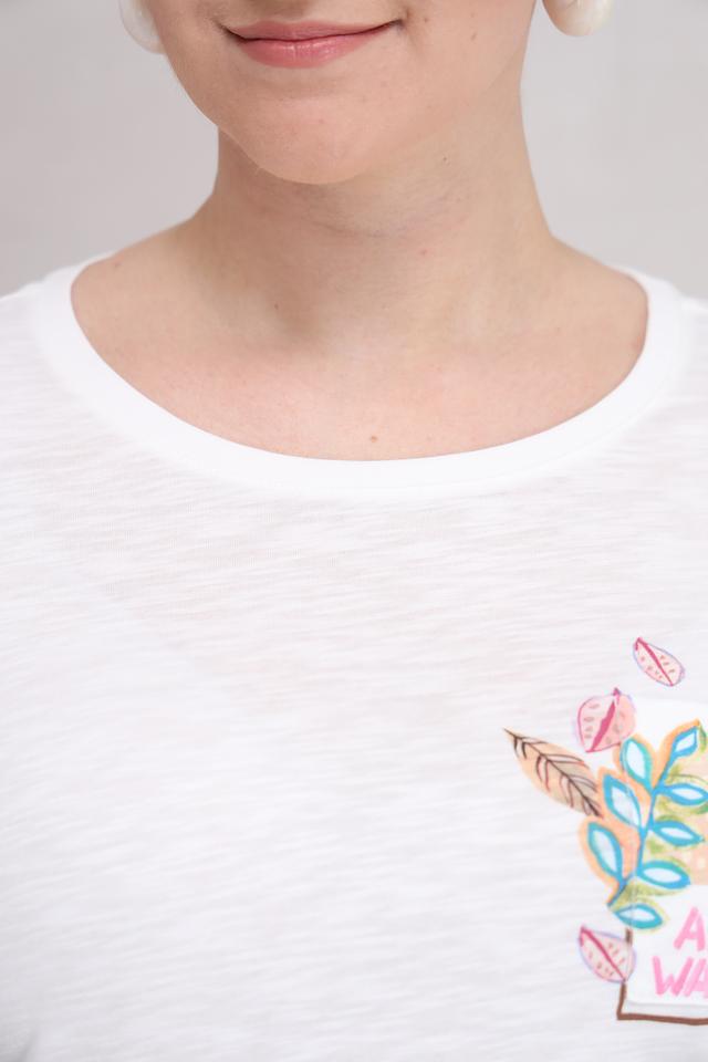 Белая футболка Lecomte с ярким цветочным принтом на груди и спине. Изготовлена из мягкого хлопка с модалом для комфорта и приятных ощущений. Состав: хлопок 50%, модал 50%