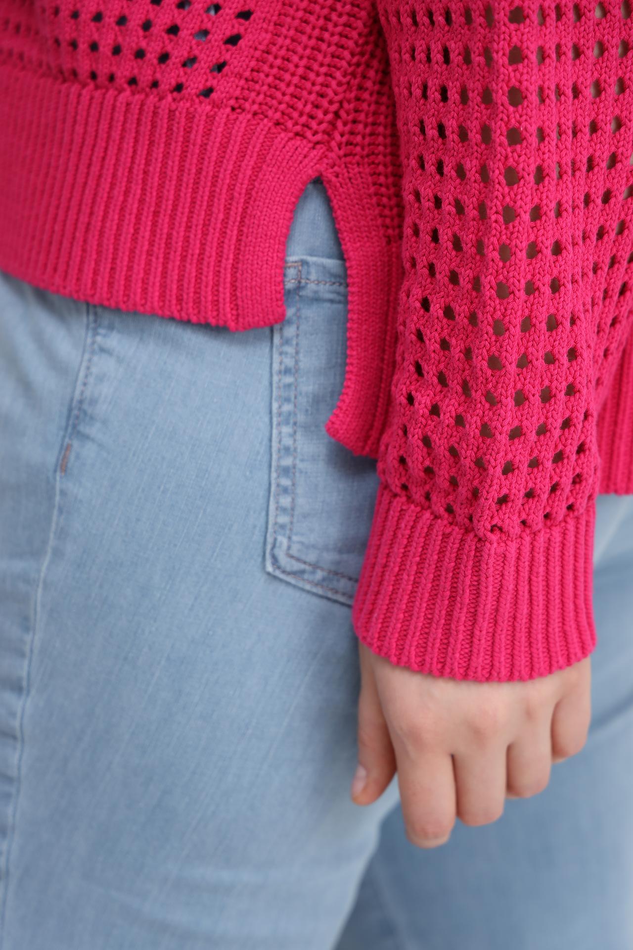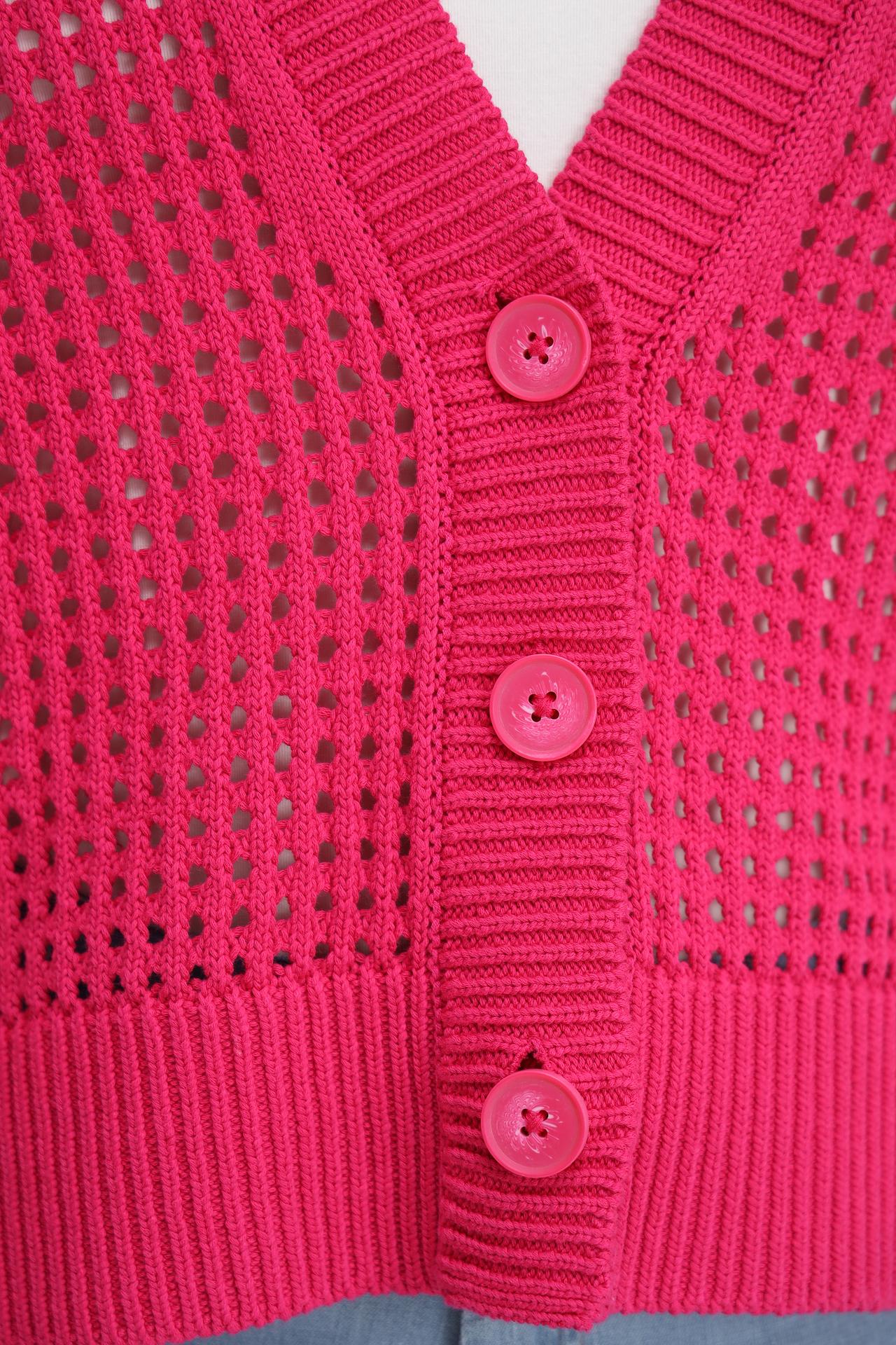 - Ажурная вязка: Жакет имеет оригинальный дизайн, который подчеркивает женственность и добавляет образу неповторимости.