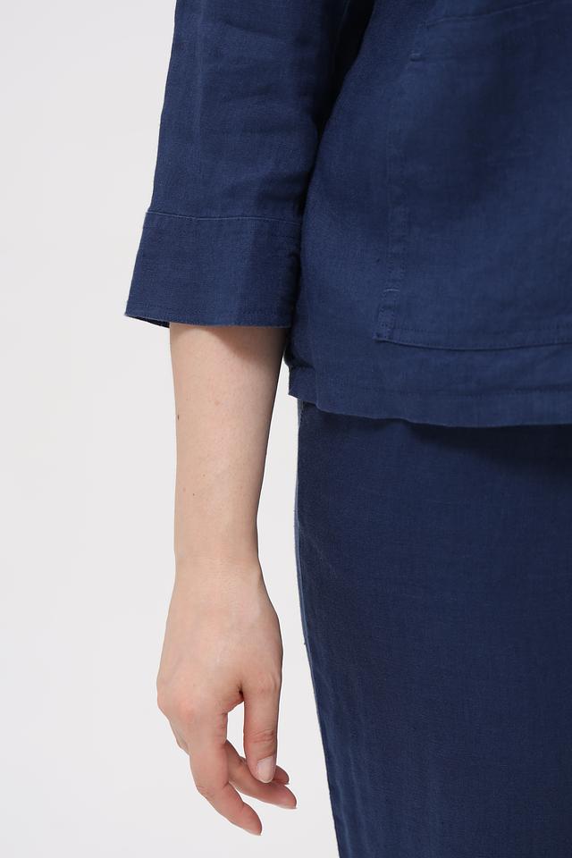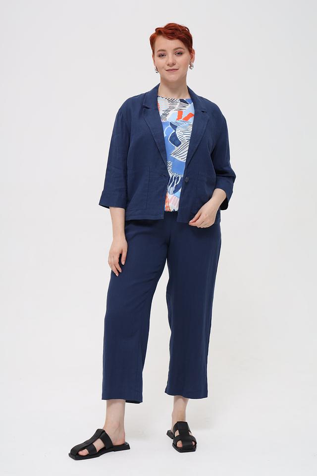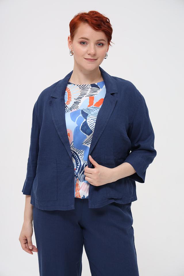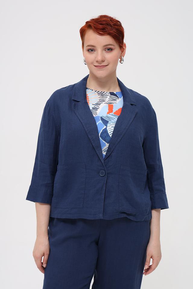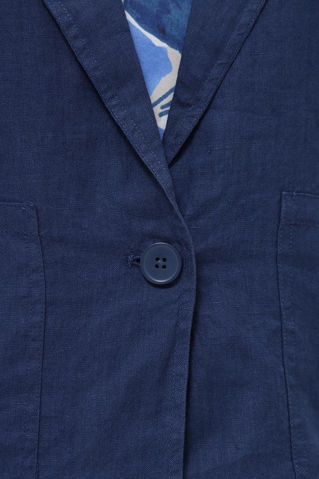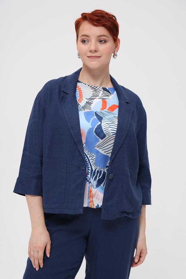 Синий льняной жакет Lecomte – стильная и комфортная модель с 3/4 рукавом и лацканами. Жакет выполнен из натурального льна, что обеспечивает отличную воздухопроницаемость и комфорт в жаркую погоду. Состав: лен 100%