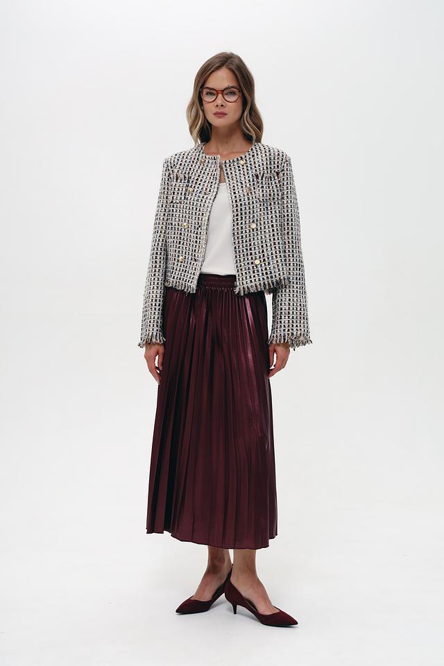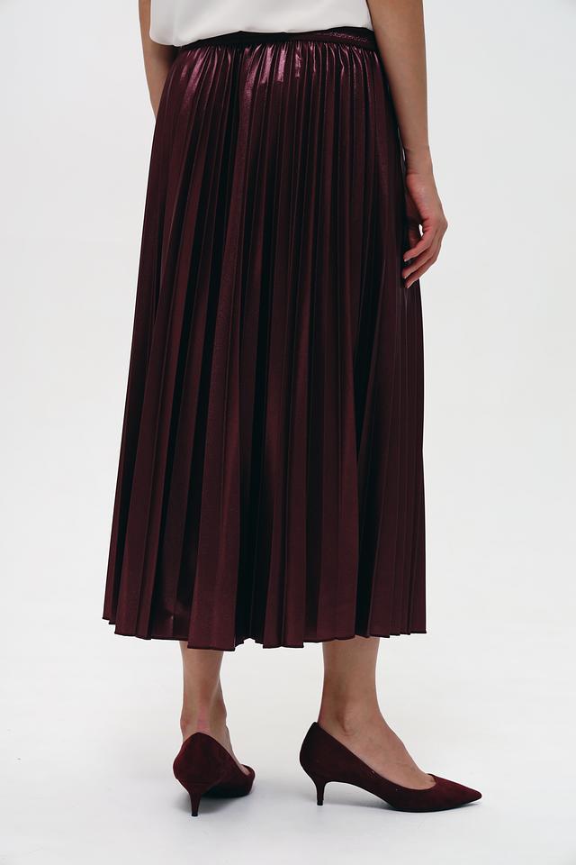 Бордовая плиссированная юбка от Lecomte – элегантная модель длиной миди с удобной резинкой на талии. Идеально подходит для создания стильных образов, сочетая в себе комфорт и изысканность. Состав: полиэстер 100%