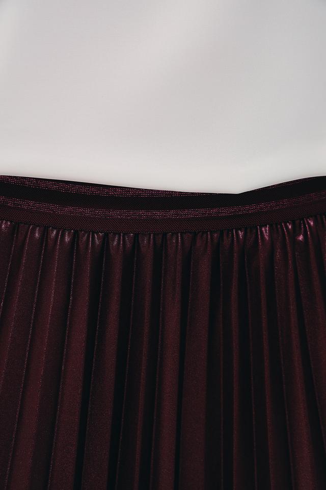 Благодаря насыщенному бордовому цвету, юбка станет ярким акцентом в вашем гардеробе и легко сочетается с различными топами и обувью. Она идеально подходит для создания как повседневных, так и вечерних образов.