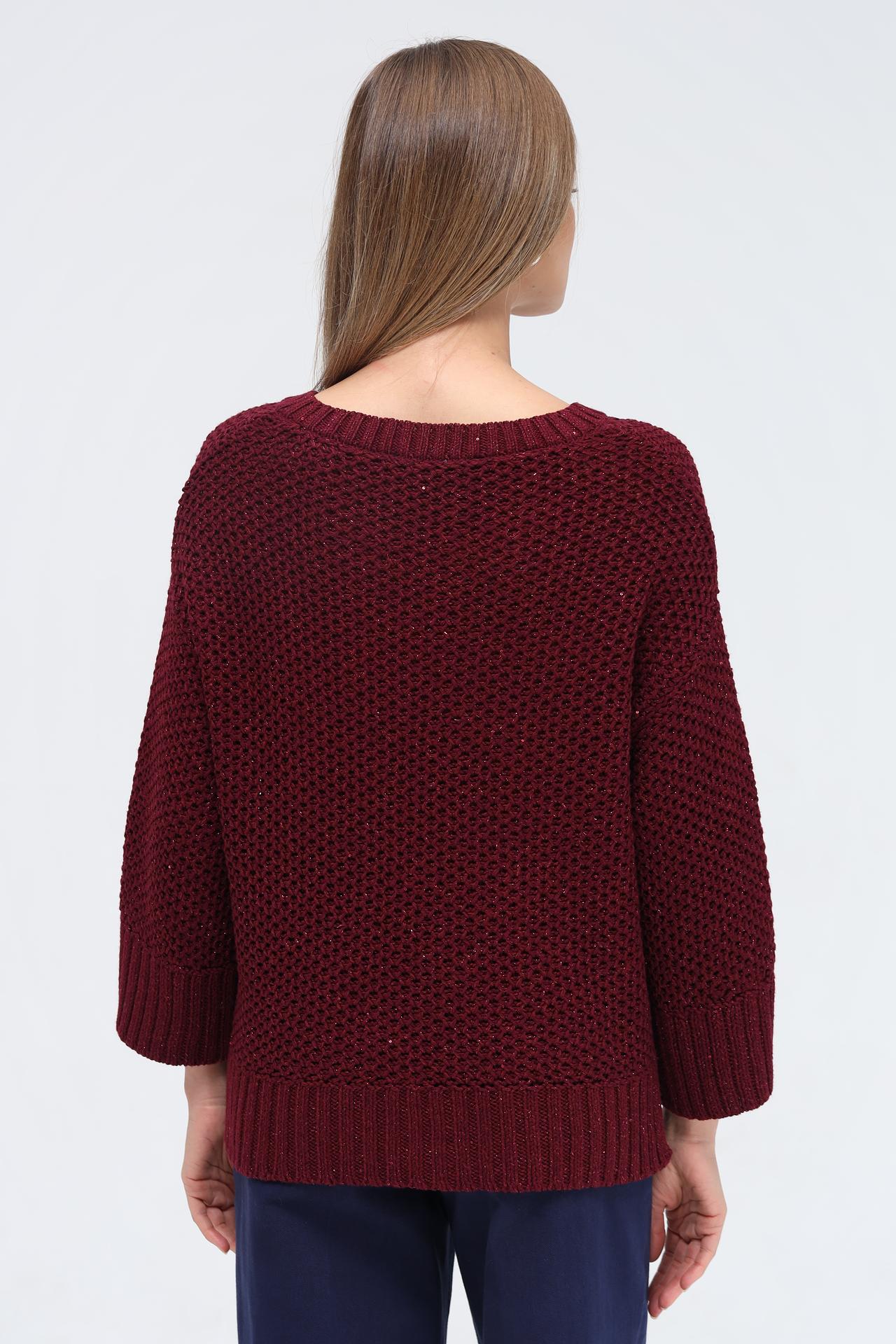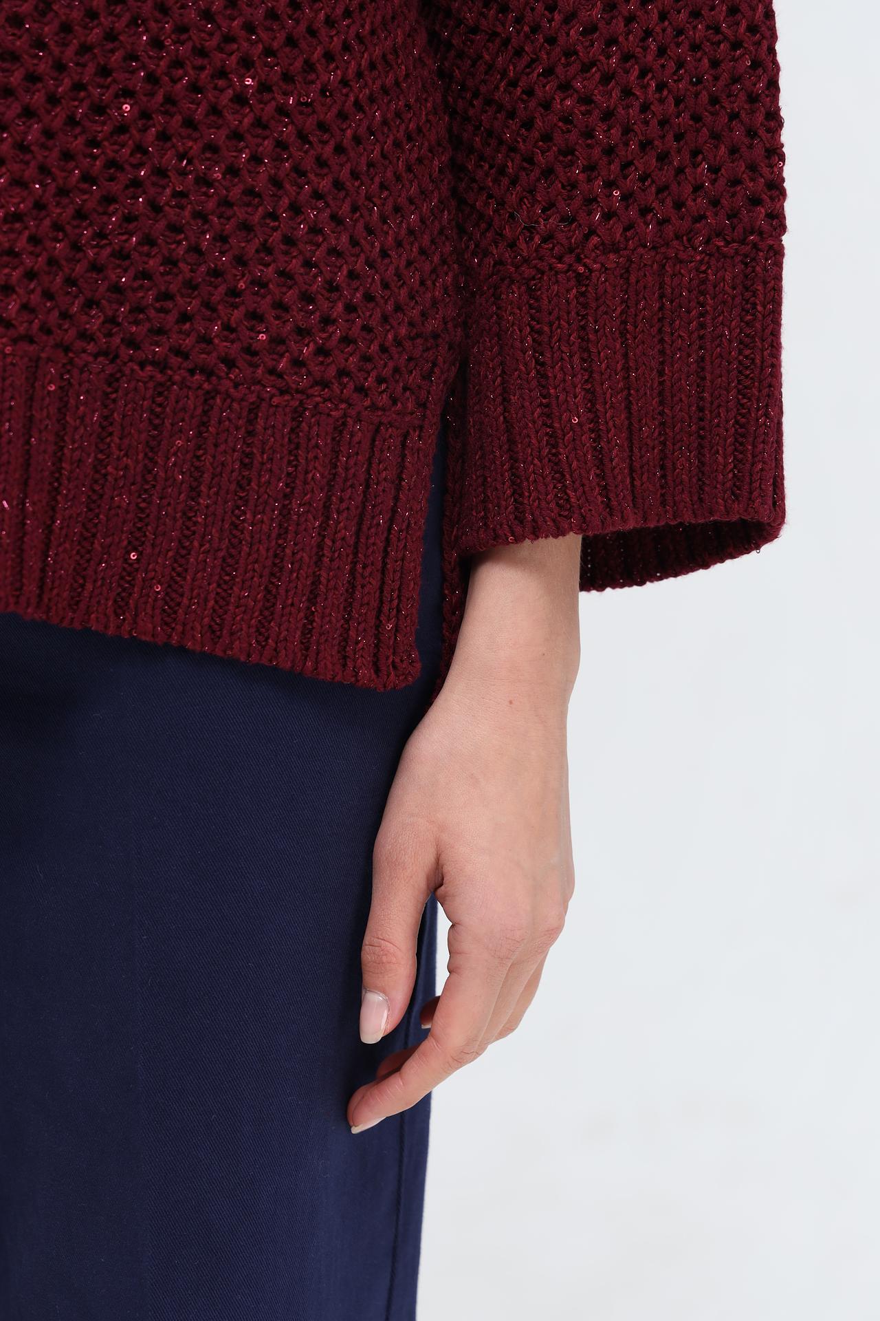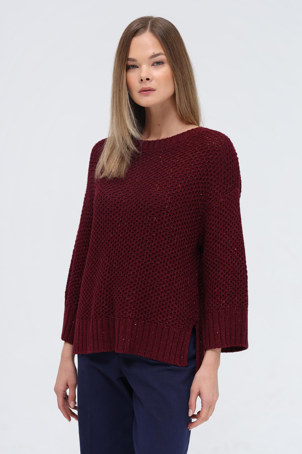 - Универсальный дизайн: Классический крой и элегантный бордовый цвет позволяют легко комбинировать вязаный пуловер с различными элементами гардероба. Он идеально подходит как для офиса, так и для неформальных встреч.