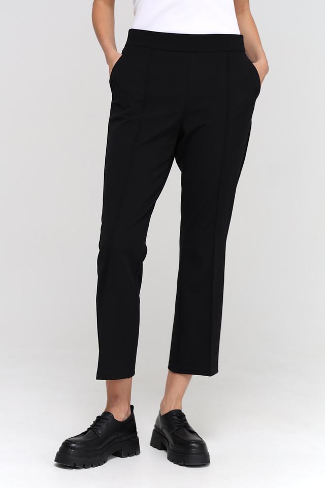 Представляем элегантные брюки от бренда Lecomte. Эта модель выполнена в классическом чёрном цвете, который легко сочетается с любым верхом.