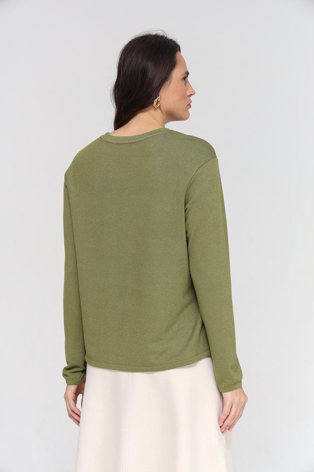 Оливковый пуловер от Lecomte – это стильная и комфортная модель с V-образным вырезом и завязками по бокам. Изготовлен из мягкой вискозы с добавлением металлизированной нити и эластана, обеспечивающих приятные тактильные ощущения и хорошую посадку по фигуре. Состав: вискоза 70%, метализ.нить 25%, эластан 5%