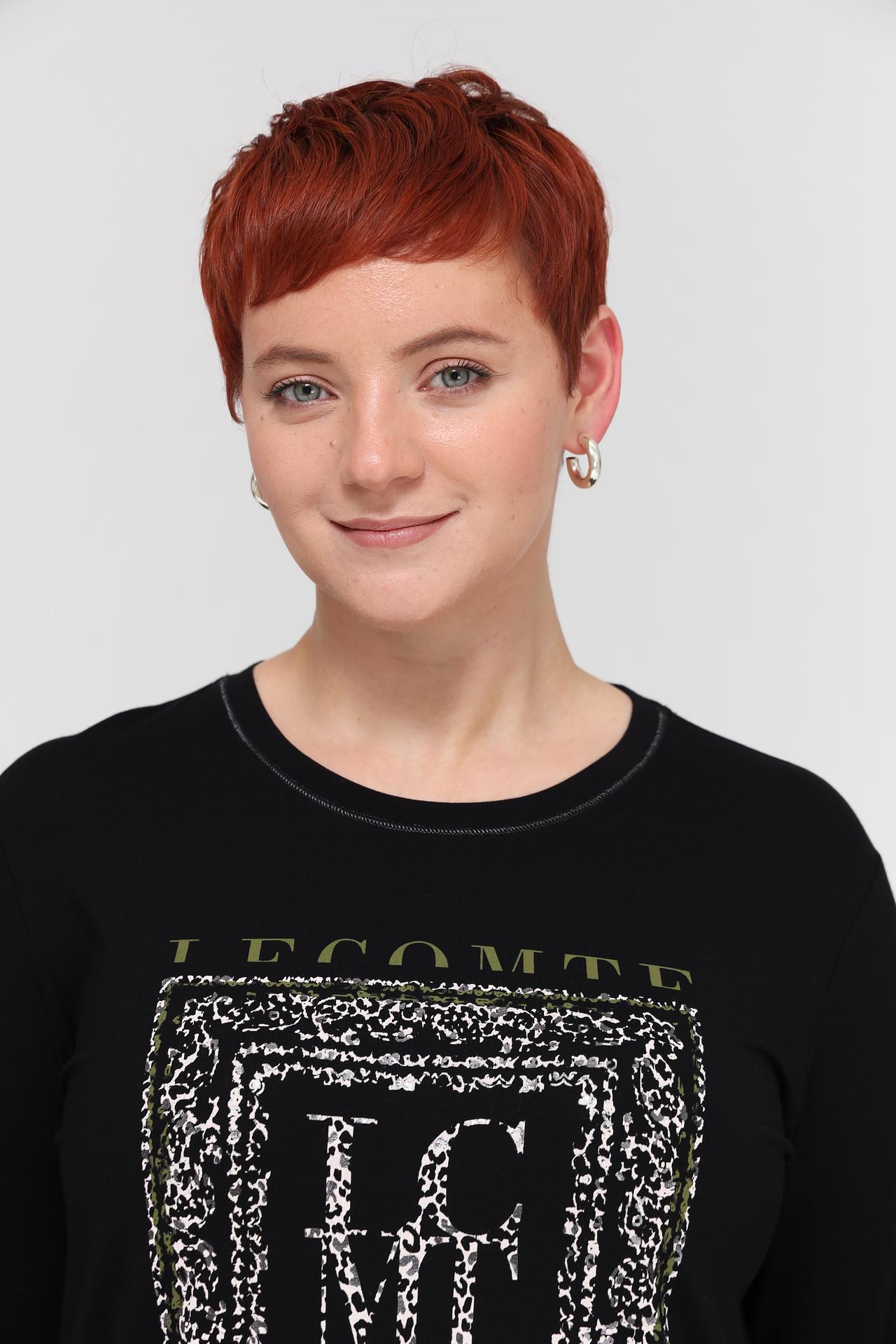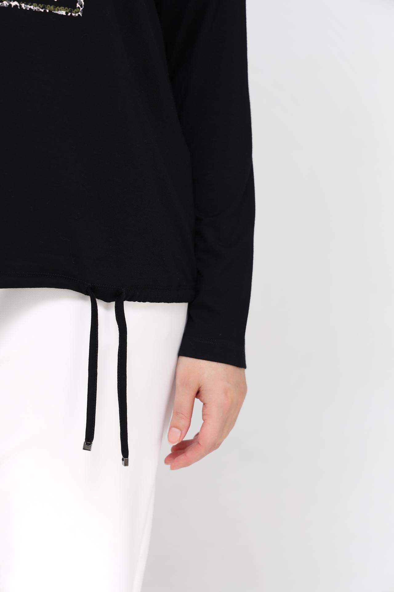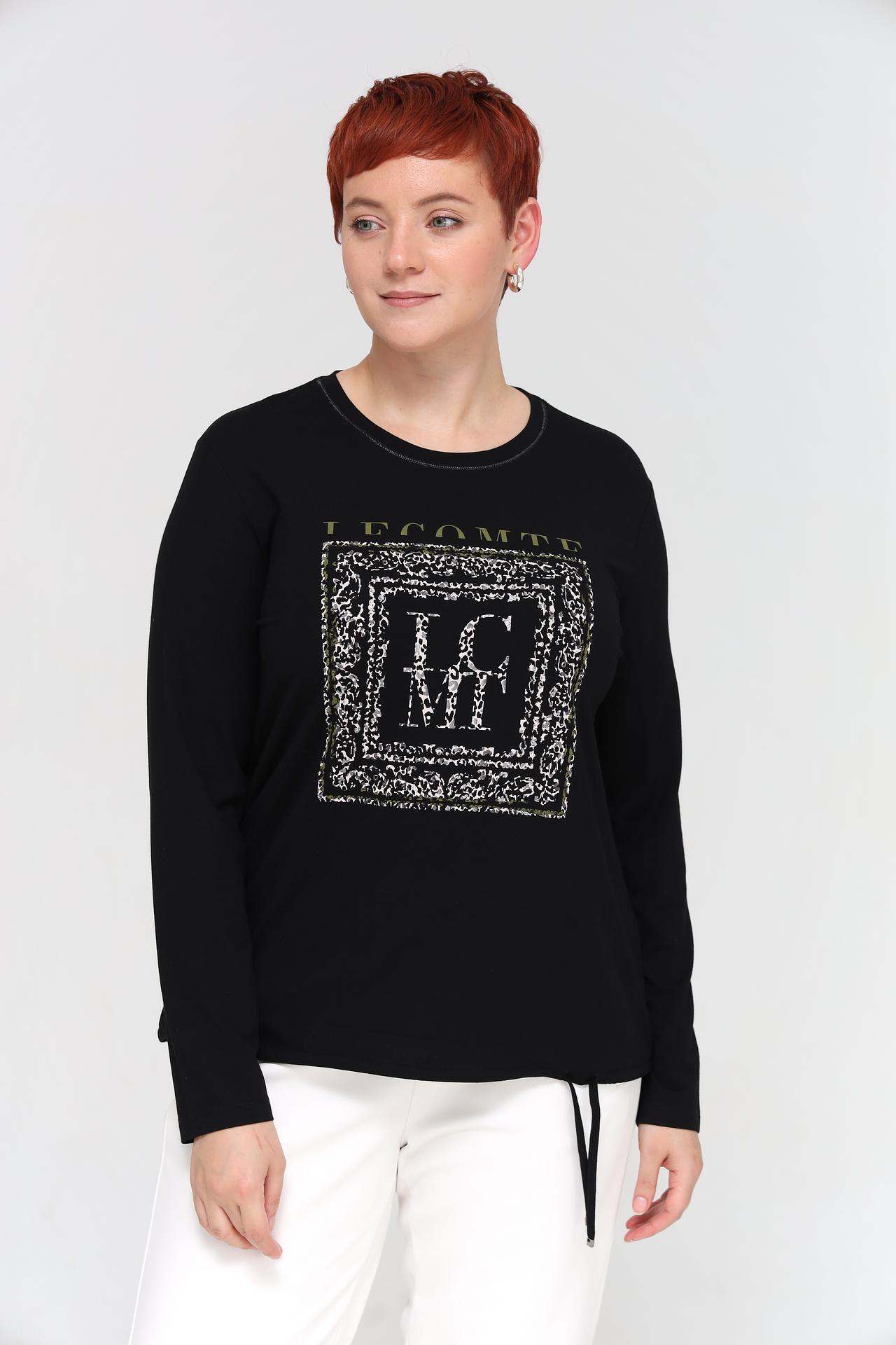 Базовая футболка Lecomte черного цвета станет неотъемлемой частью вашего повседневного гардероба. Модель с длинным рукавом и круглым вырезом декорирована эффектным принтом с надписью бренда, который добавляет изюминку образу. Эластичный низ с кулиской позволяет регулировать посадку и создавать различные силуэты. Футболка выполнена из приятной к телу вискозы с добавлением эластана, что обеспечивает комфорт в течение всего дня и идеальную посадку по фигуре.