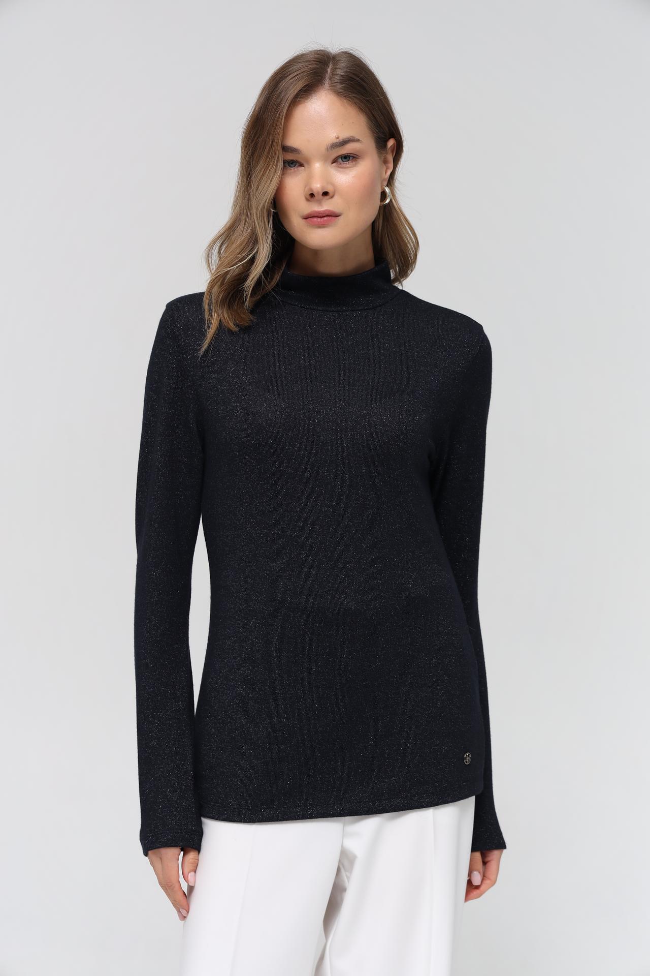 Элегантный женский пуловер Lecomte станет неотъемлемой частью вашего гардероба. Модель выполнена в классическом чёрном цвете и дополнена деликатным мерцанием метализированной нити, создавая эффектный блеск.