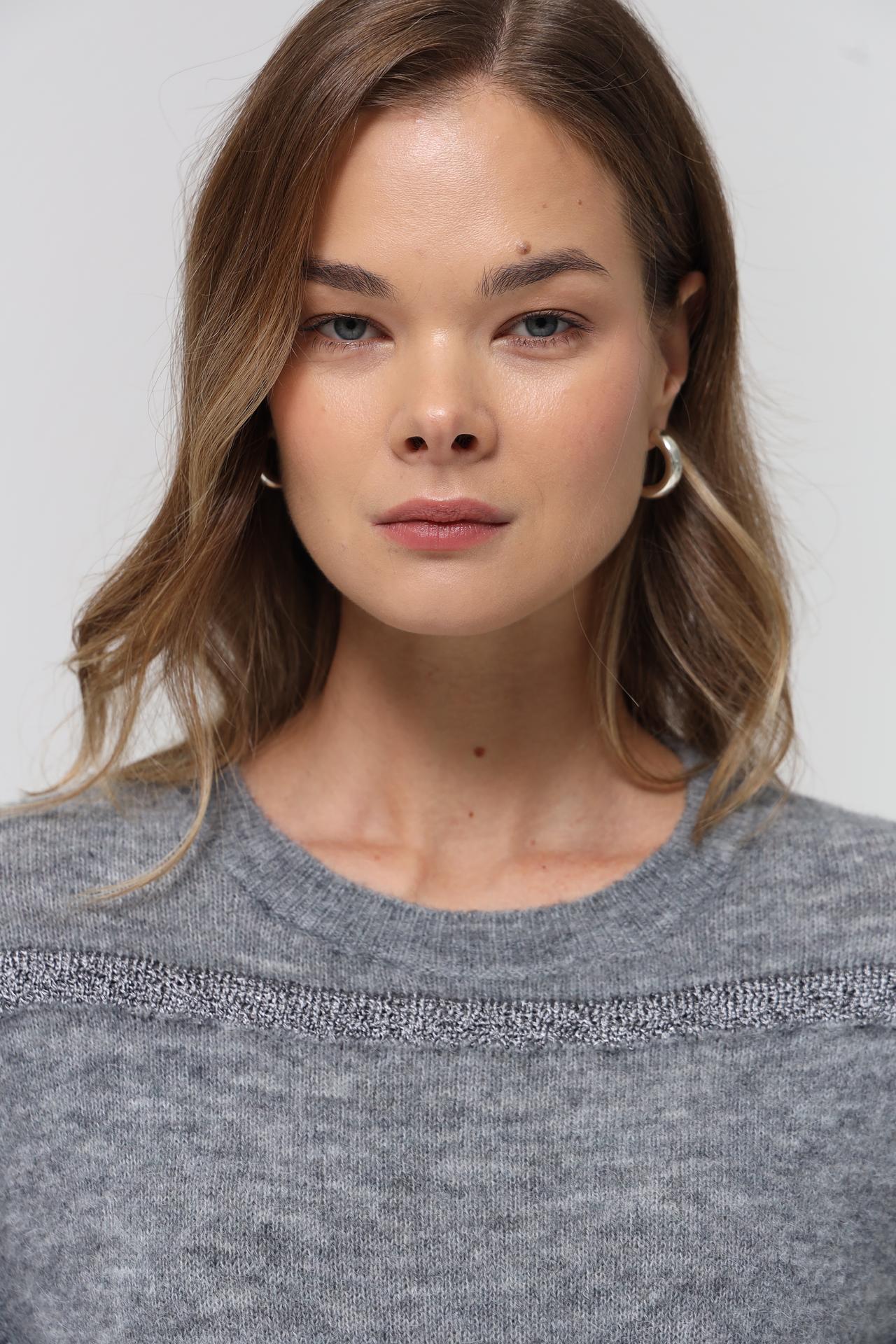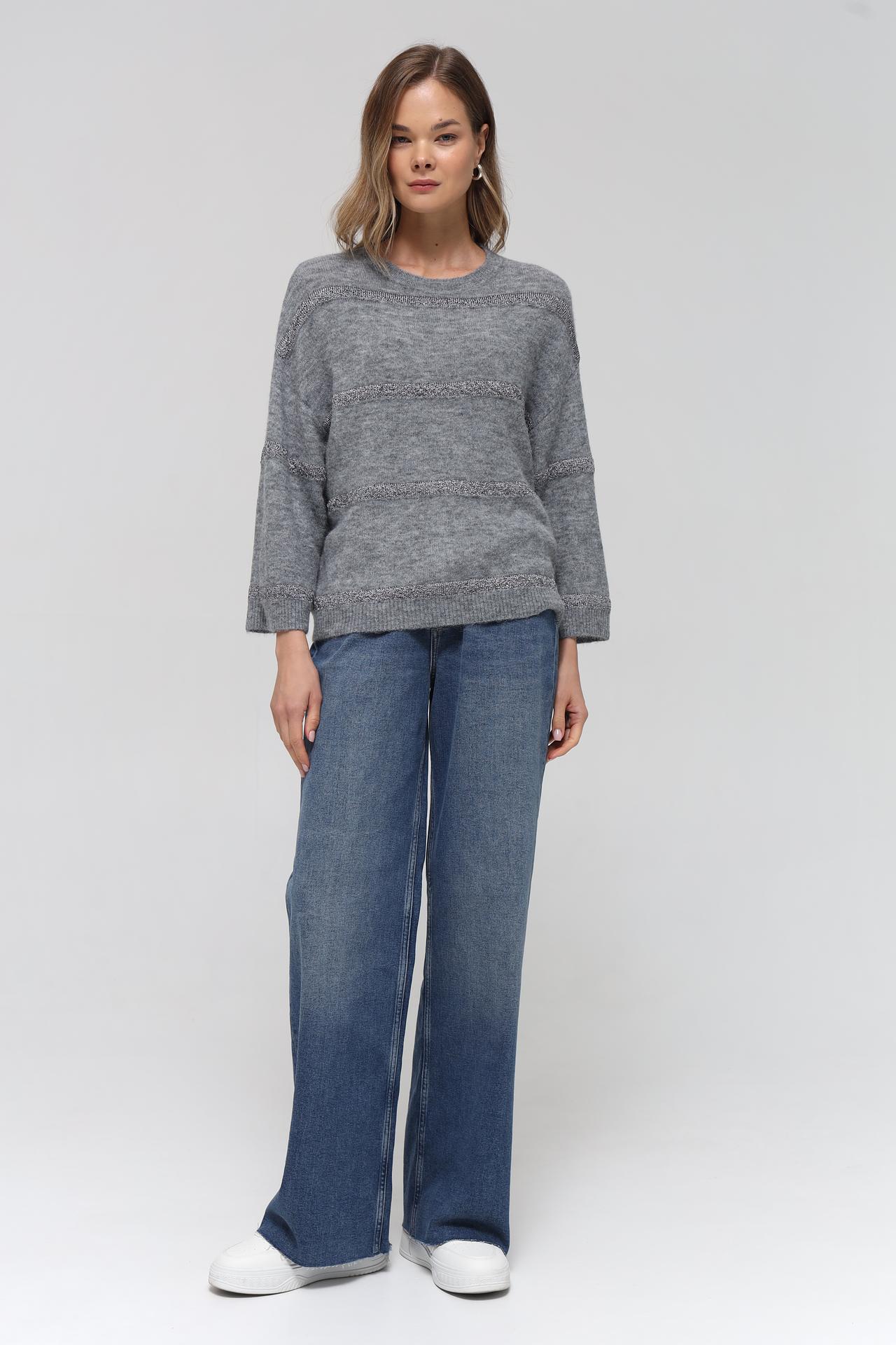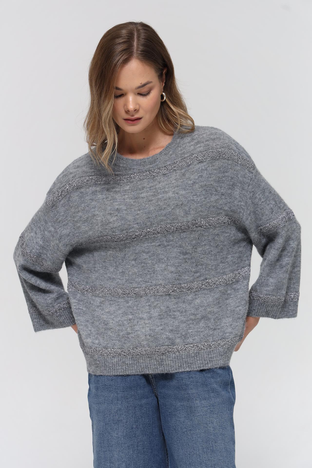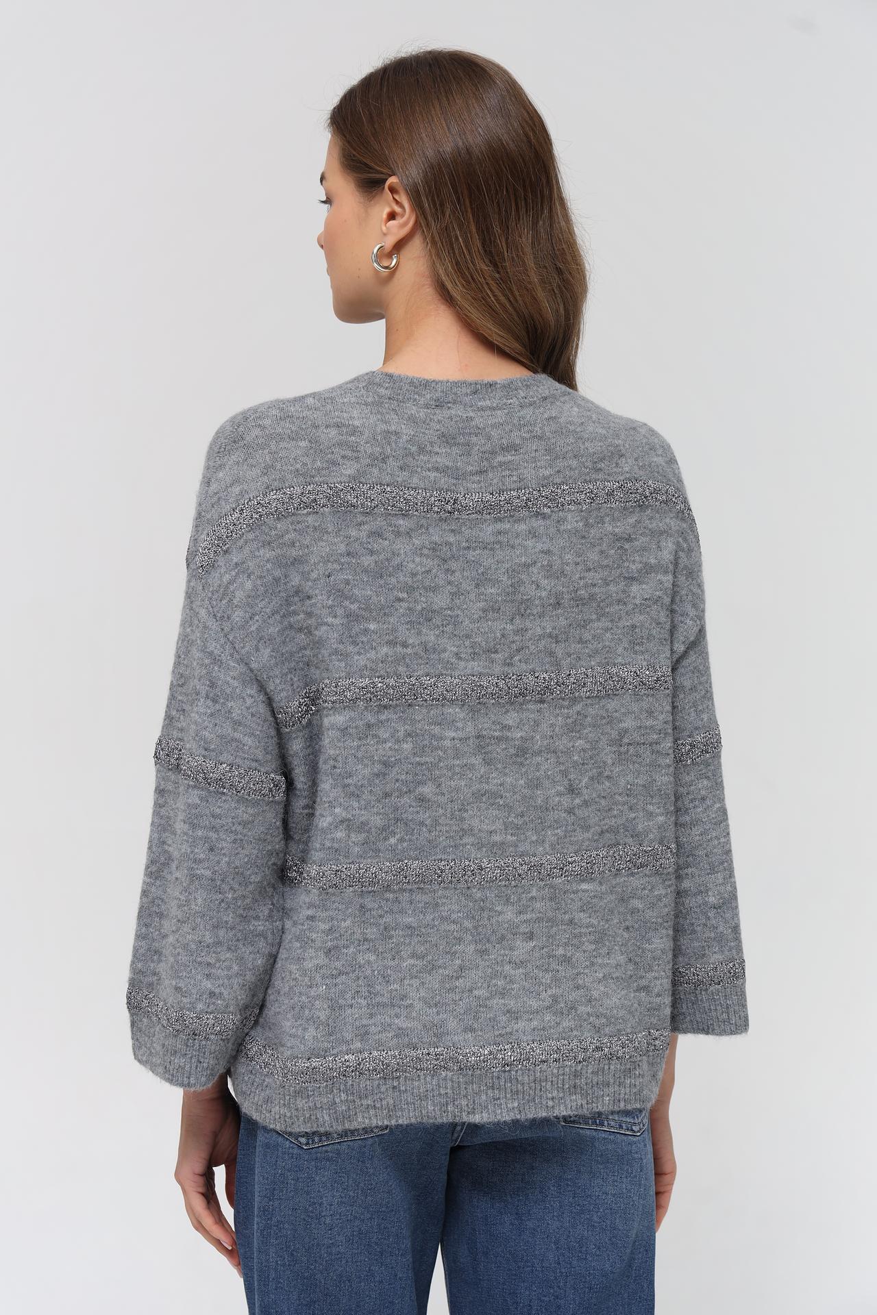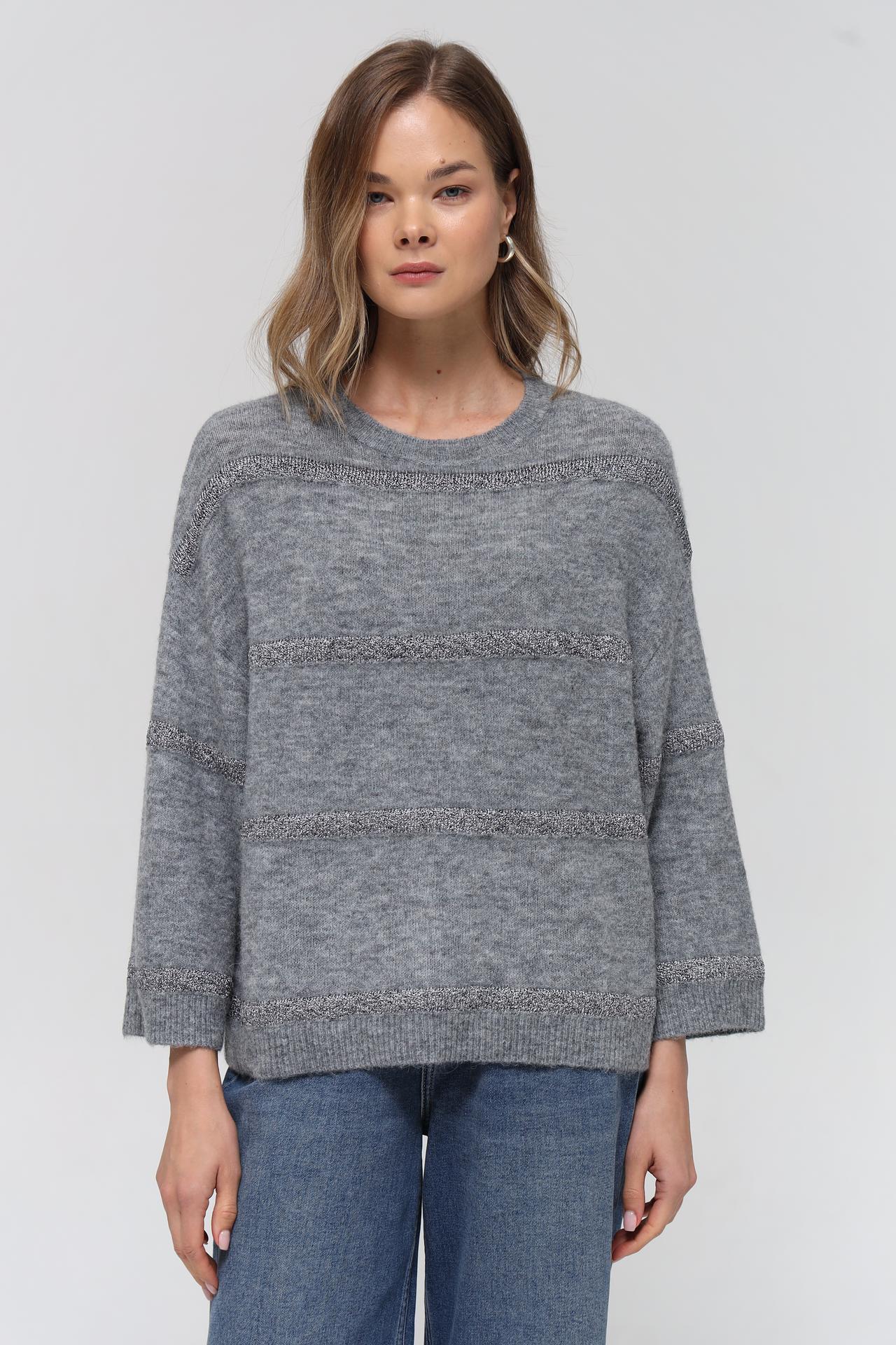 Элегантный серый пуловер от Lecomte, выполненный из смесовой пряжи, которая дарит ощущение комфорта и тепла. Модель дополнена оригинальными декоративными полосками с люрексом, придающими изделию изысканность и мерцание. Классический крой и универсальный цвет делают этот пуловер идеальным дополнением к любому гардеробу.