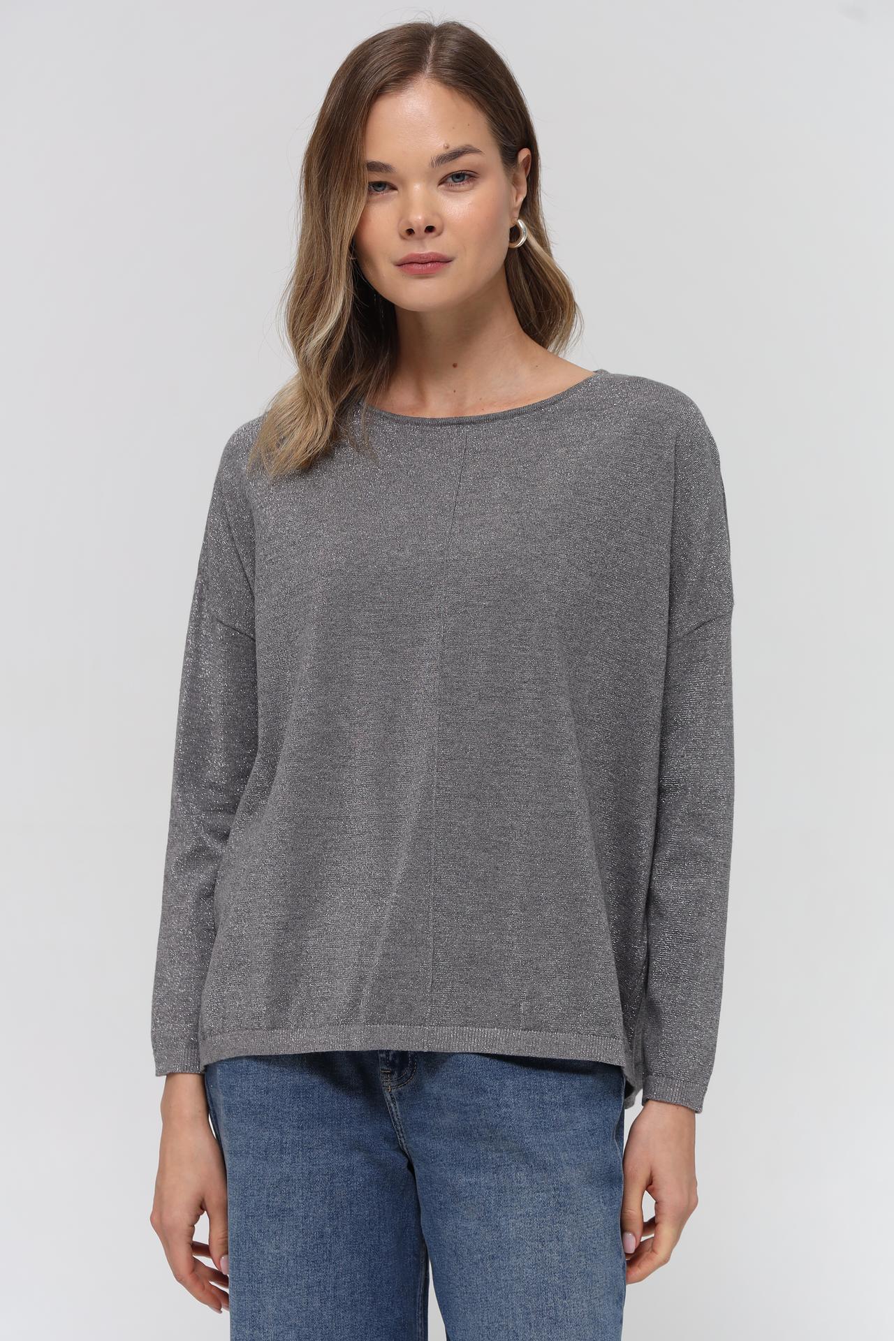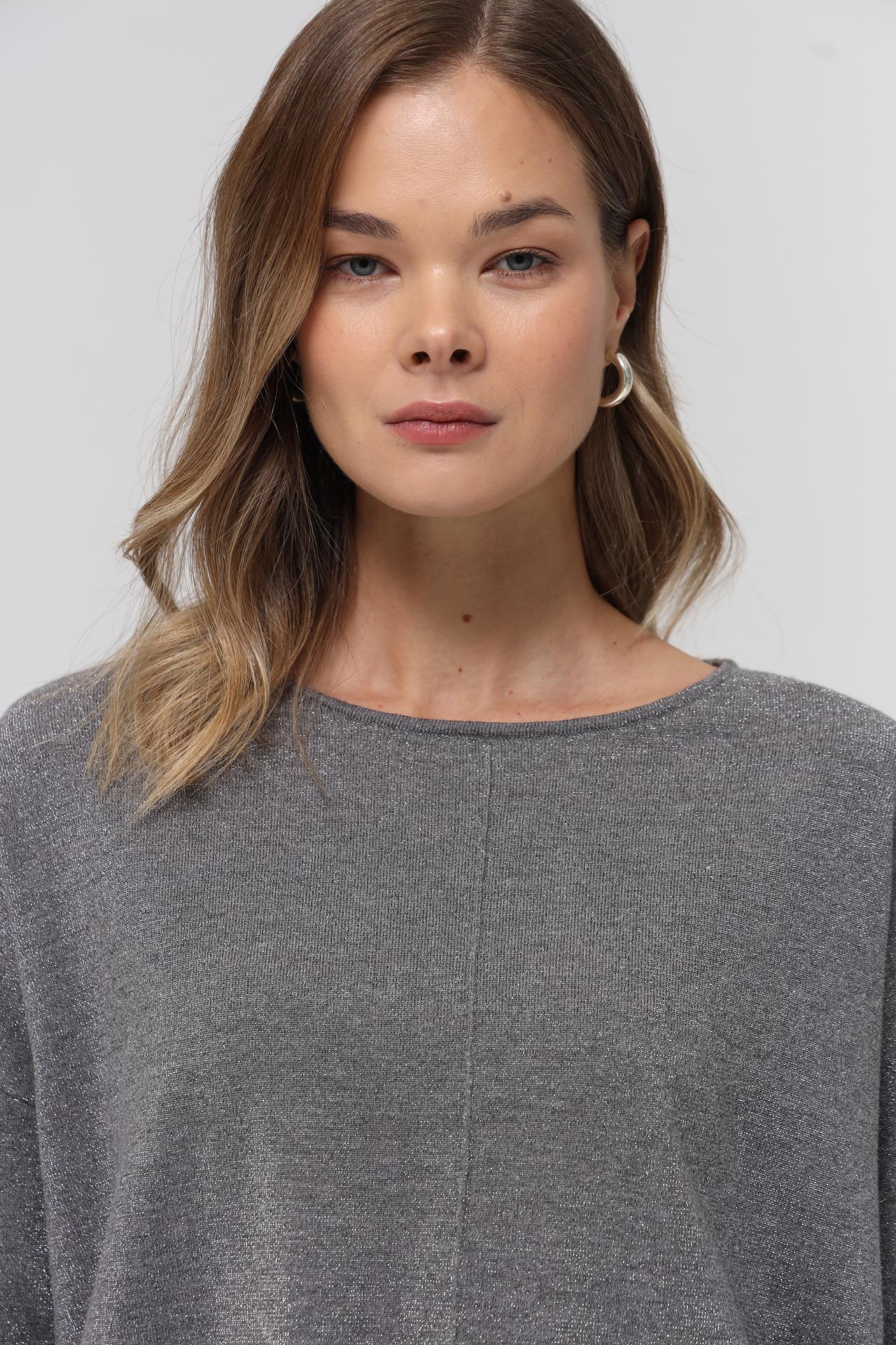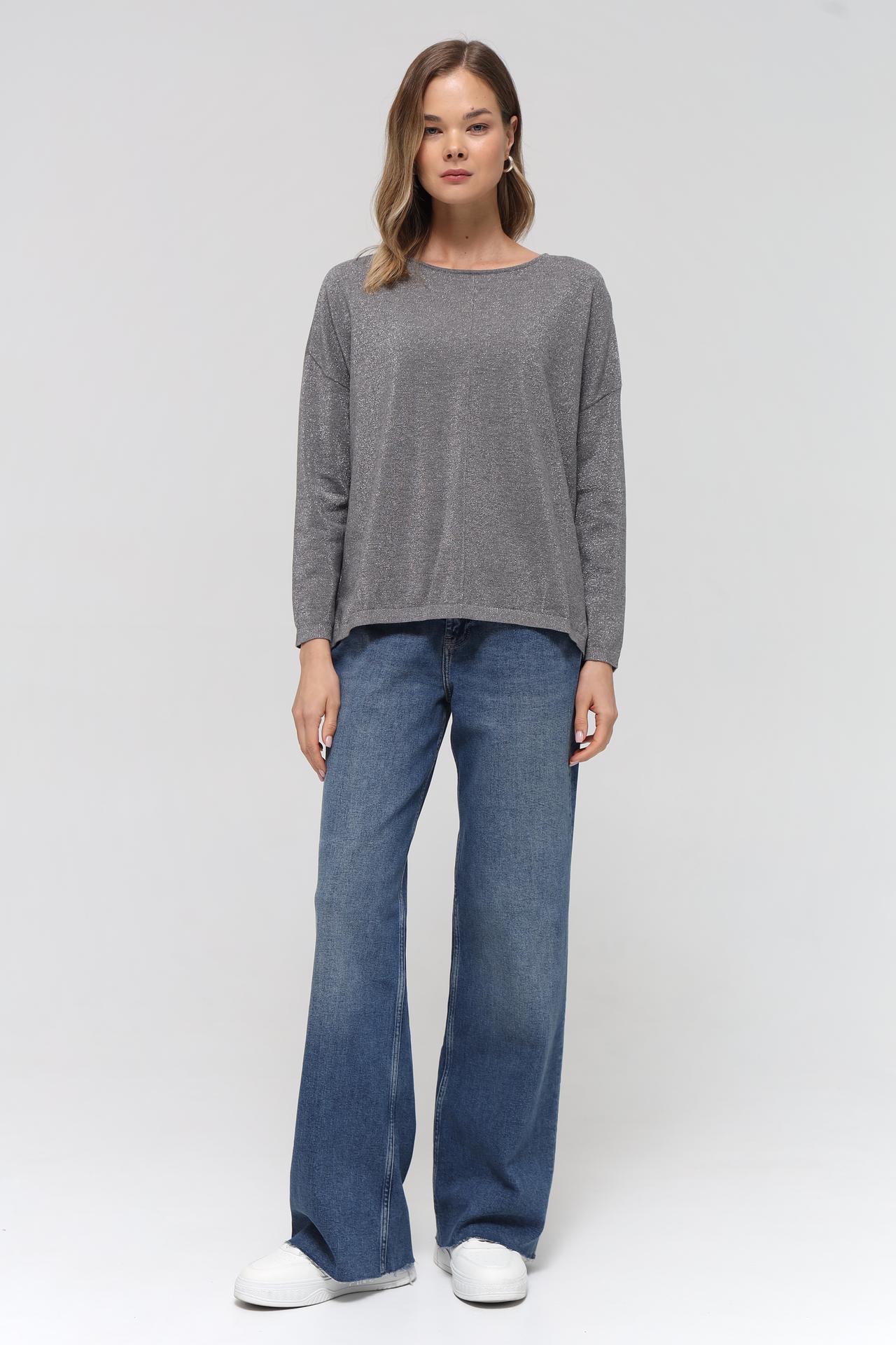 - Цвет: Элегантный серый цвет, который легко сочетается с другими оттенками в вашем гардеробе, от нейтральных до ярких. Тонкие блестящие нити в составе ткани придают легкое мерцание, делая образ более выразительным.