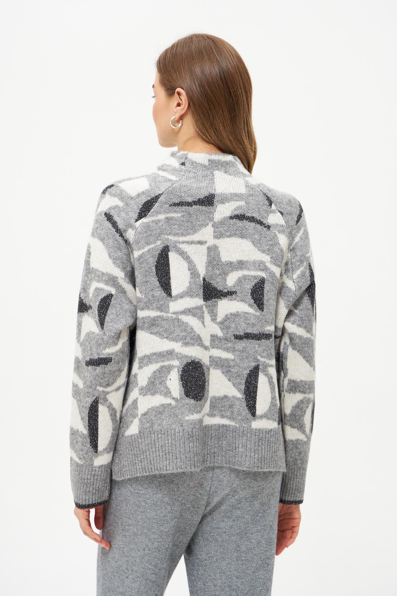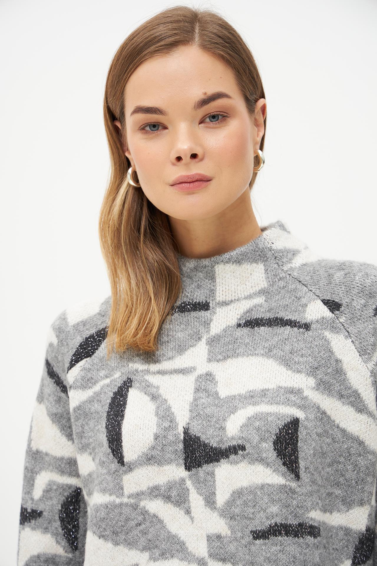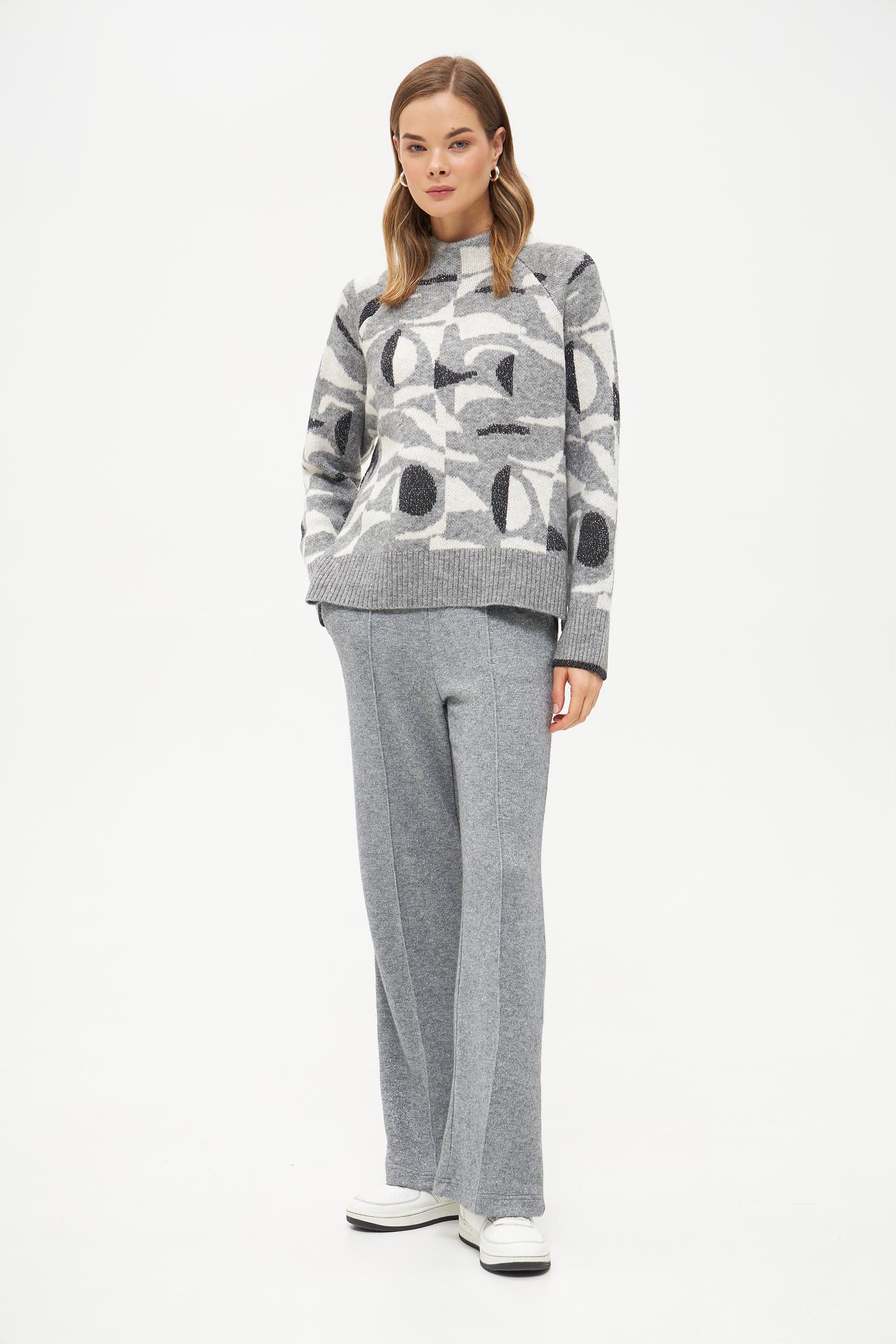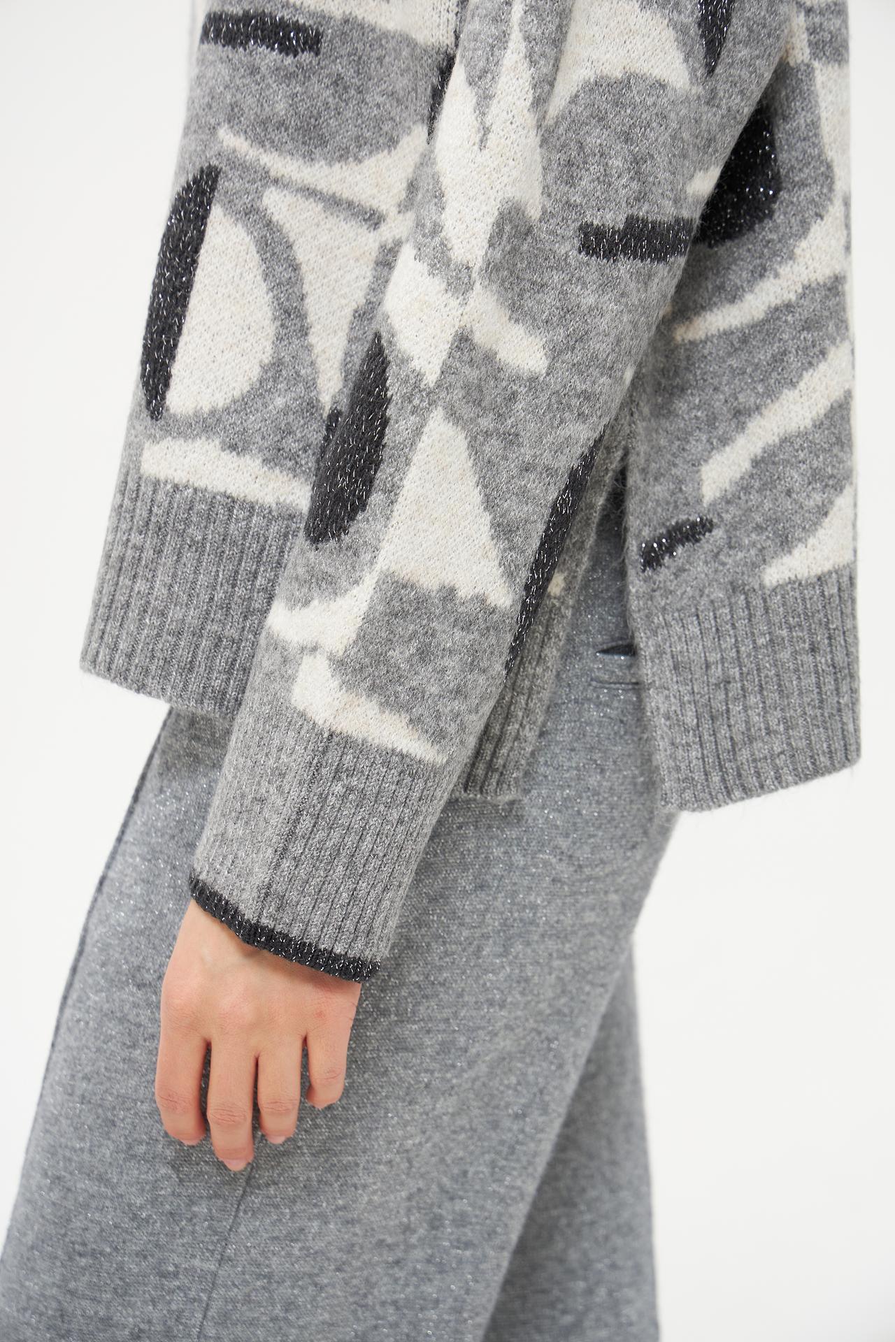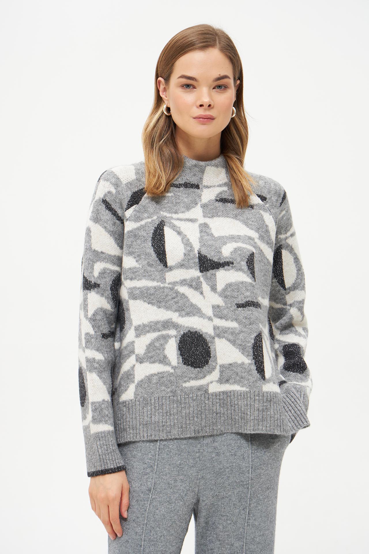 Стильный пуловер от Lecomte с оригинальным геометрическим принтом станет изюминкой вашего гардероба. Модель выполнена в универсальной серой цветовой гамме с добавлением мерцающей нити, что придает образу особую элегантность.