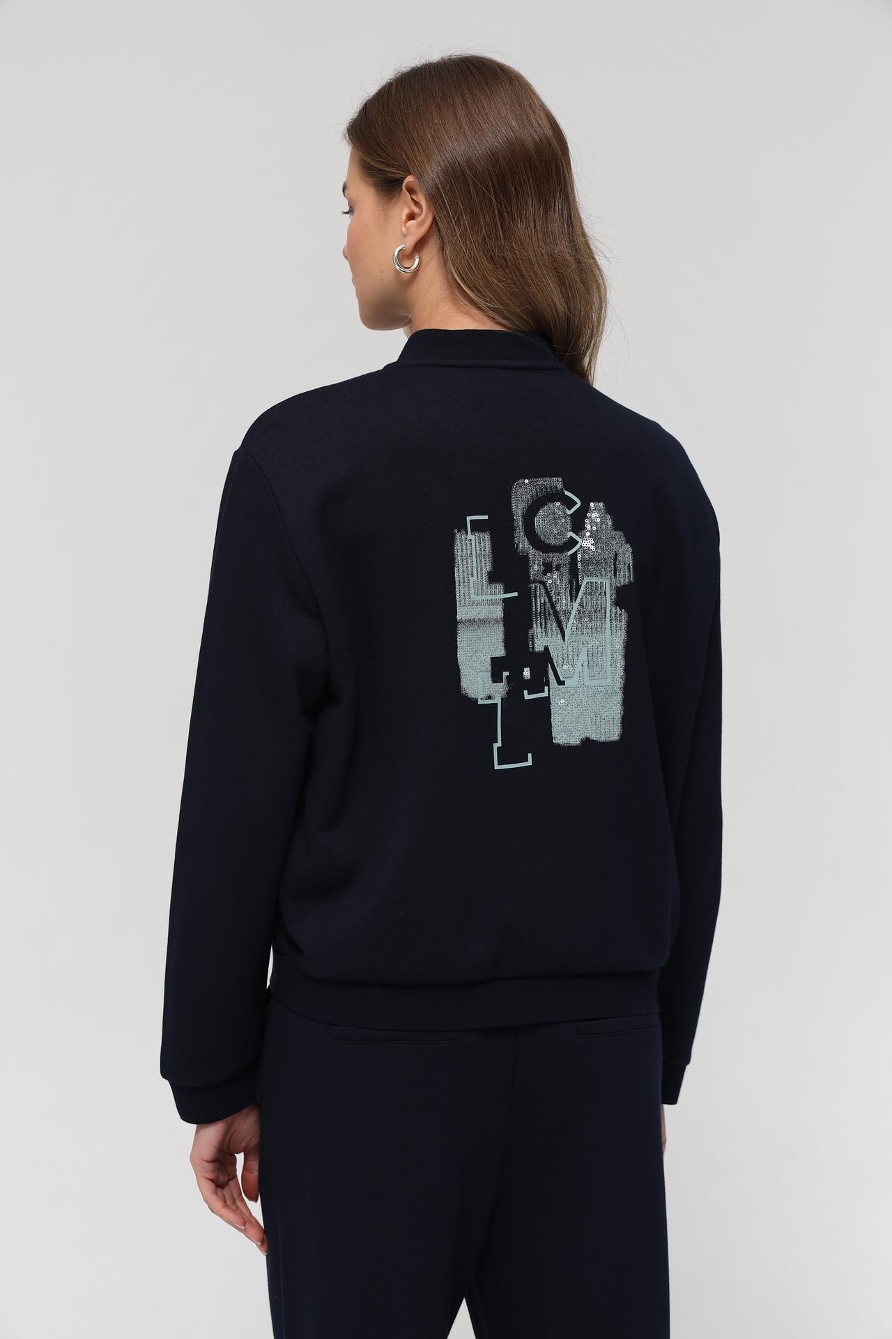 Жакет Lecomte тёмно-синий с декоративным принтом