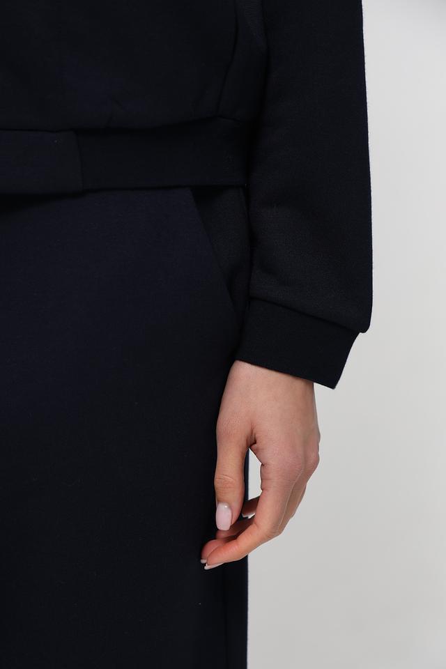 Жакет имеет приталенный силуэт, который подчеркивает фигуру. Застежка – молния, что обеспечивает удобство и практичность. Модель дополнена декоративной вышивкой на груди и рукаве, придающей ей индивидуальность.